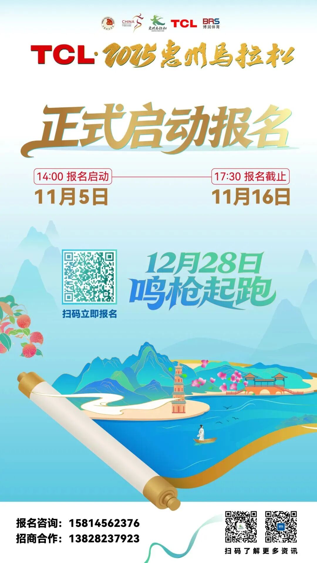 親愛的跑友,久等了。今天,TCL·2025惠州馬拉松正式啟動報名!