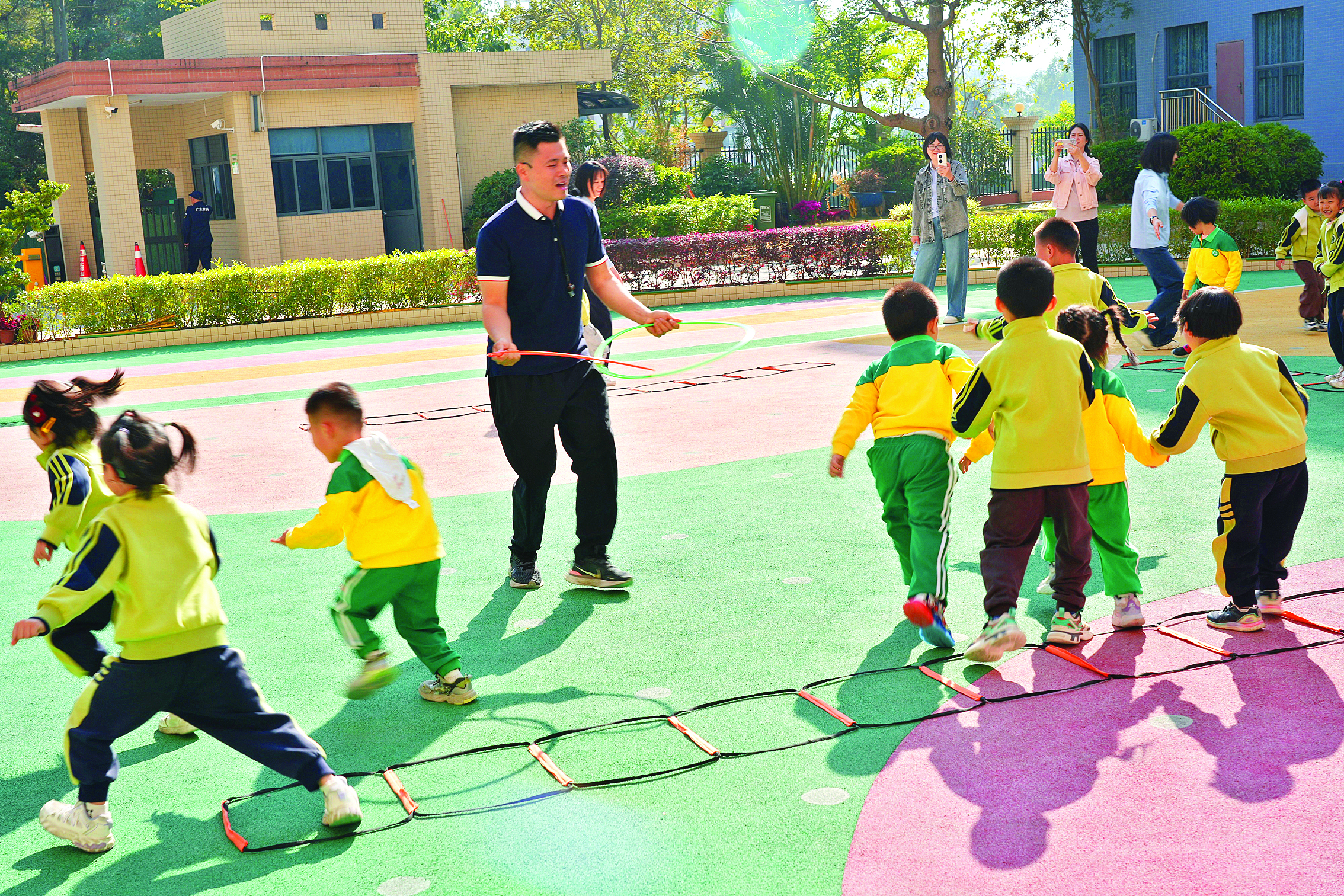 “小魚在哪里,大網(wǎng)來啦!”冬日暖陽灑滿惠州市殘疾人康復(fù)中心戶外樂園,老師手持呼啦圈化身“漁夫”,用夸張的語氣追逐著奔跑的孩子們。這群孩子中,既有康復(fù)中心的特殊幼兒,也有來自機(jī)關(guān)幼兒園的普通幼兒,他們手拉手嬉戲打鬧,歡笑聲此起彼伏。這樣的融合課堂,早已成為這里的日常,更是惠州打造殘疾人友好型城市、深耕“醫(yī)康教(醫(yī)療、康復(fù)、教育)”一體化康復(fù)模式的生動(dòng)縮影。