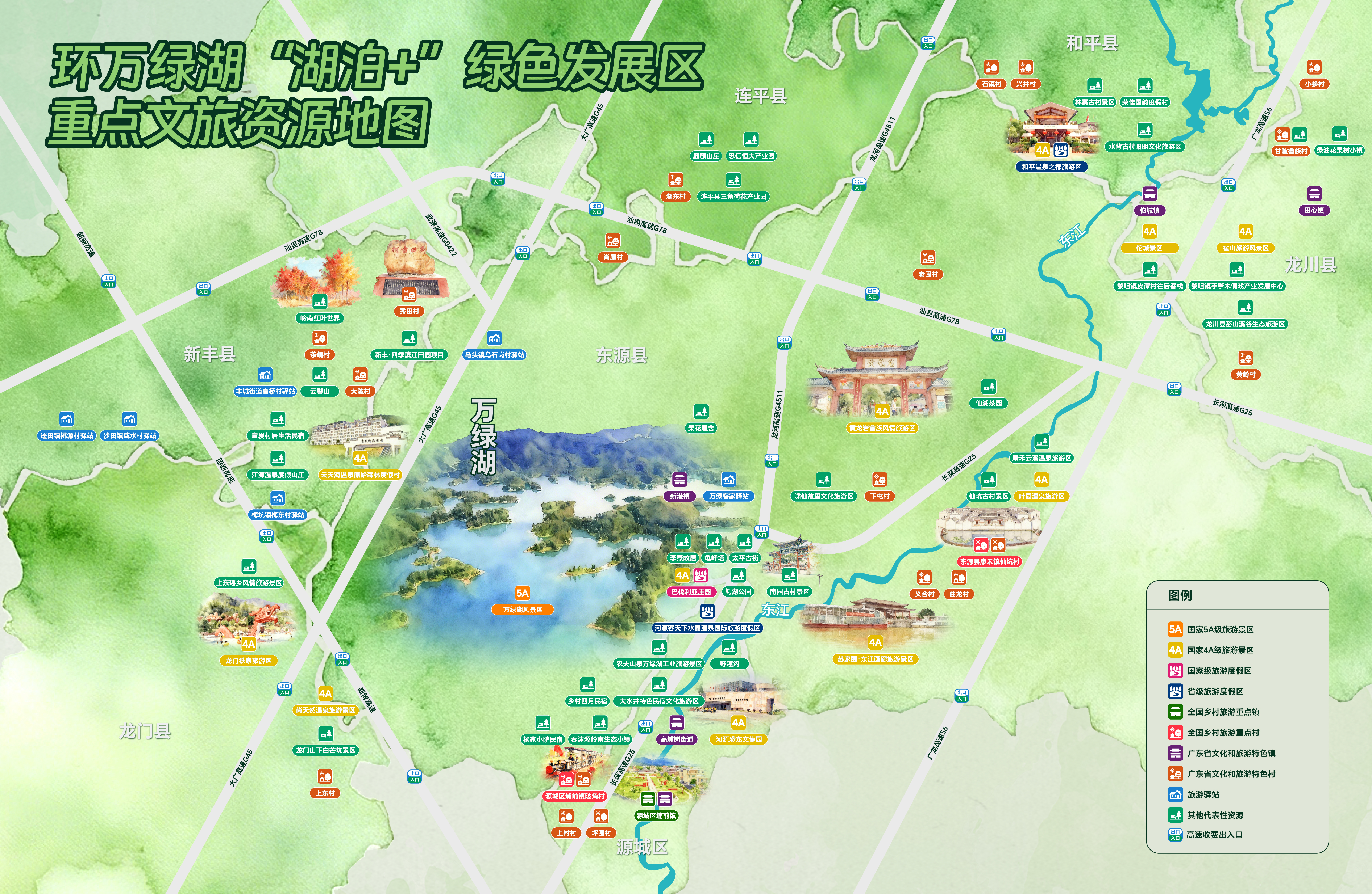 11月27日通過的《中共廣東省委關(guān)于制定廣東省國民經(jīng)濟和社會發(fā)展第十五個五年規(guī)劃的建議》提出要全面推進環(huán)萬綠湖“湖泊+”綠色發(fā)展區(qū)建設(shè)。環(huán)萬綠湖“湖泊+”綠色發(fā)展區(qū)是廣東省依托河源市萬綠湖等生態(tài)資源和韶關(guān)市、惠州市有關(guān)區(qū)域打造的綜合性綠色發(fā)展示范區(qū),聚焦生態(tài)保護與產(chǎn)業(yè)融合,推動“湖泊+”多元業(yè)態(tài)發(fā)展。該區(qū)域以萬綠湖為核心,旨在通過“湖泊+”模式推動生態(tài)優(yōu)勢轉(zhuǎn)化為發(fā)展優(yōu)勢,打造成為大灣區(qū)水生態(tài)產(chǎn)品重要供給地、享譽世界的水文化體驗?zāi)康牡。截至目前,區(qū)域內(nèi)共有國家5A級旅游景區(qū)1個,國家4A級旅游景區(qū)11個,國家級旅游度假區(qū)1個,省級旅游度假區(qū)2個,全國鄉(xiāng)村旅游重點鎮(zhèn)1個,全國鄉(xiāng)村旅游重點村2個,廣東省文化和旅游特色鎮(zhèn)5個,廣東省文化和旅游特色村19個,旅游驛站6個,其他代表性資源36個。