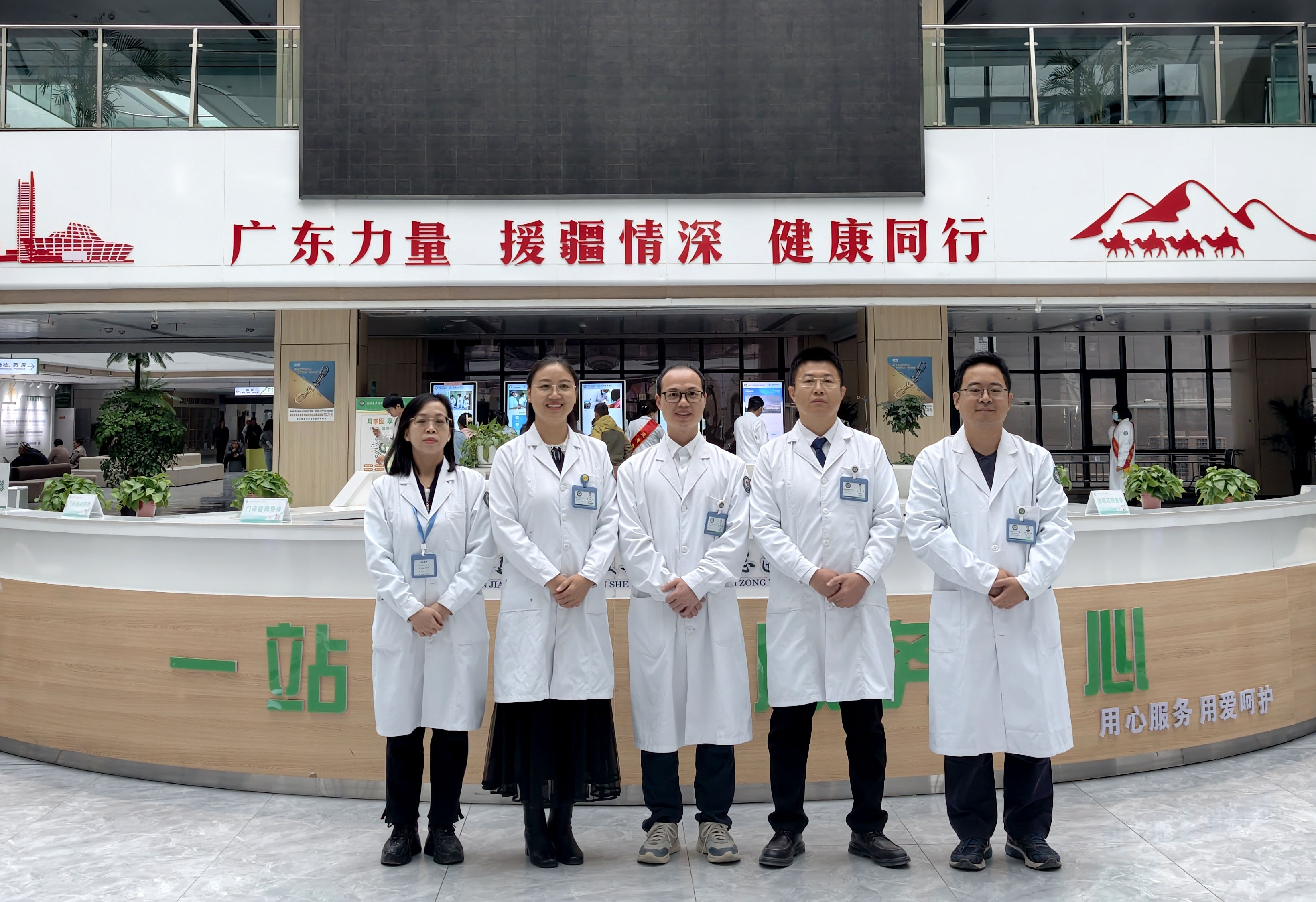 惠州援疆醫(yī)生合影,左起分別是鄒錦秀、李楓光、何靈峰、牛艷紅、莊志輝。