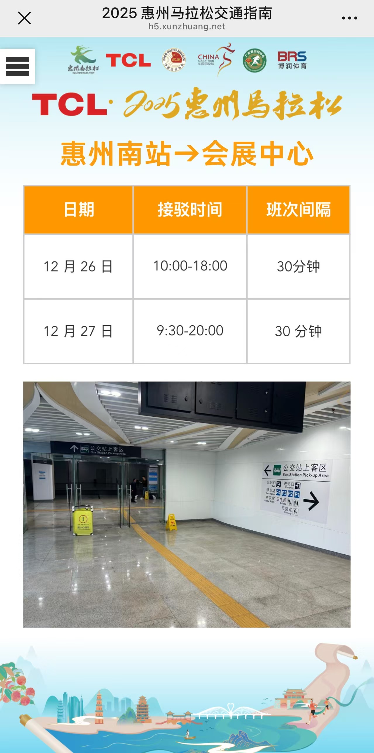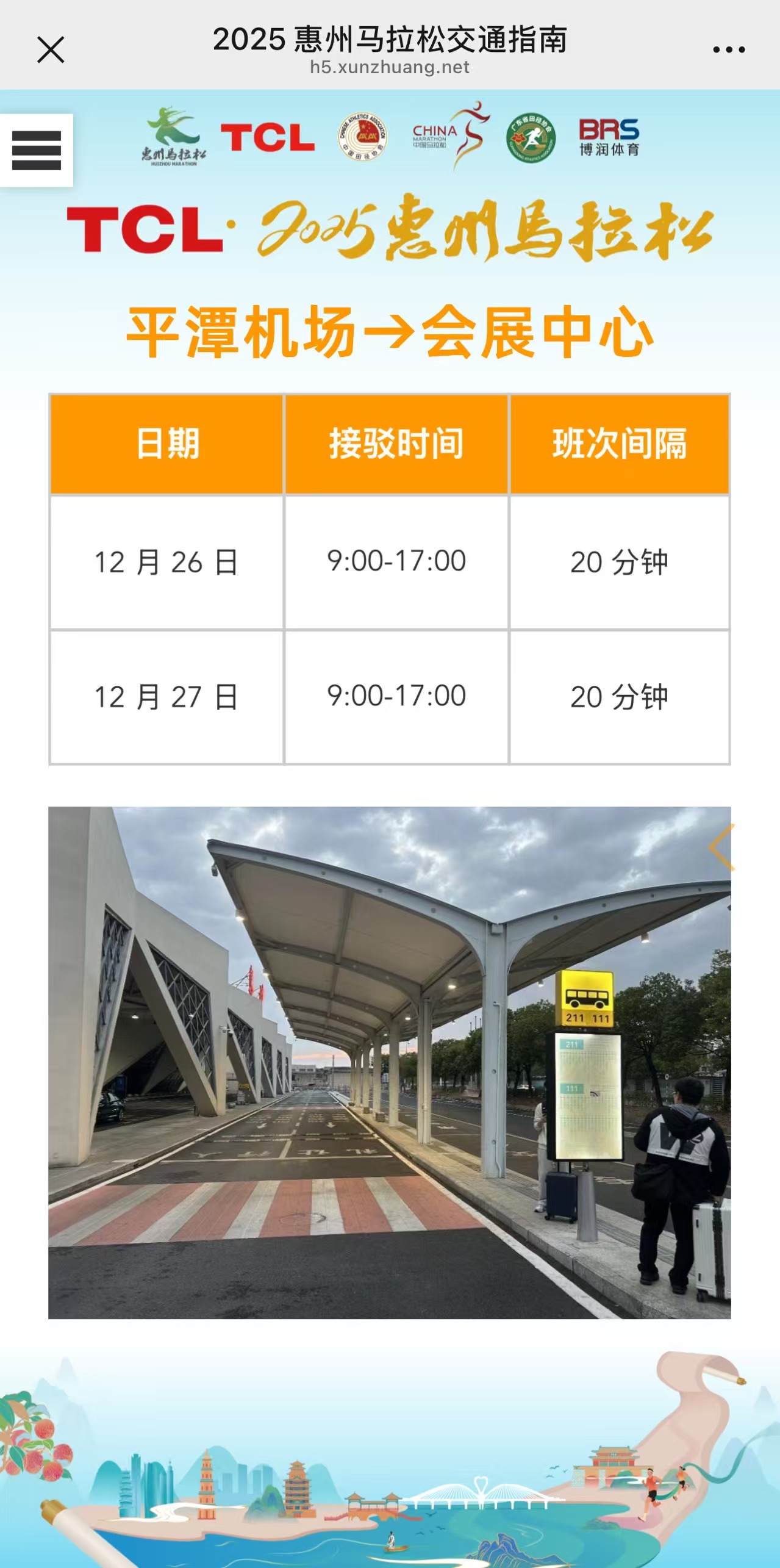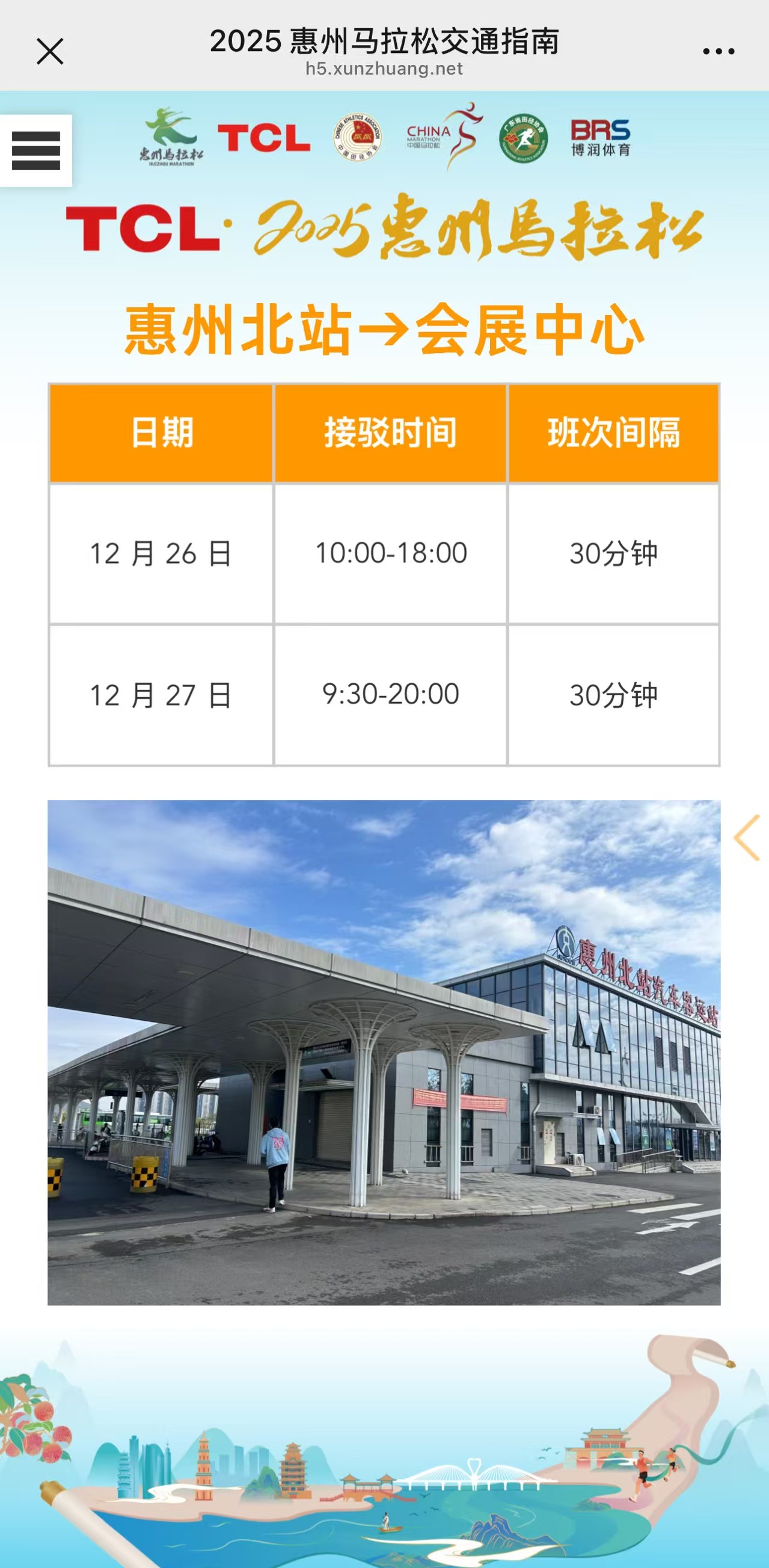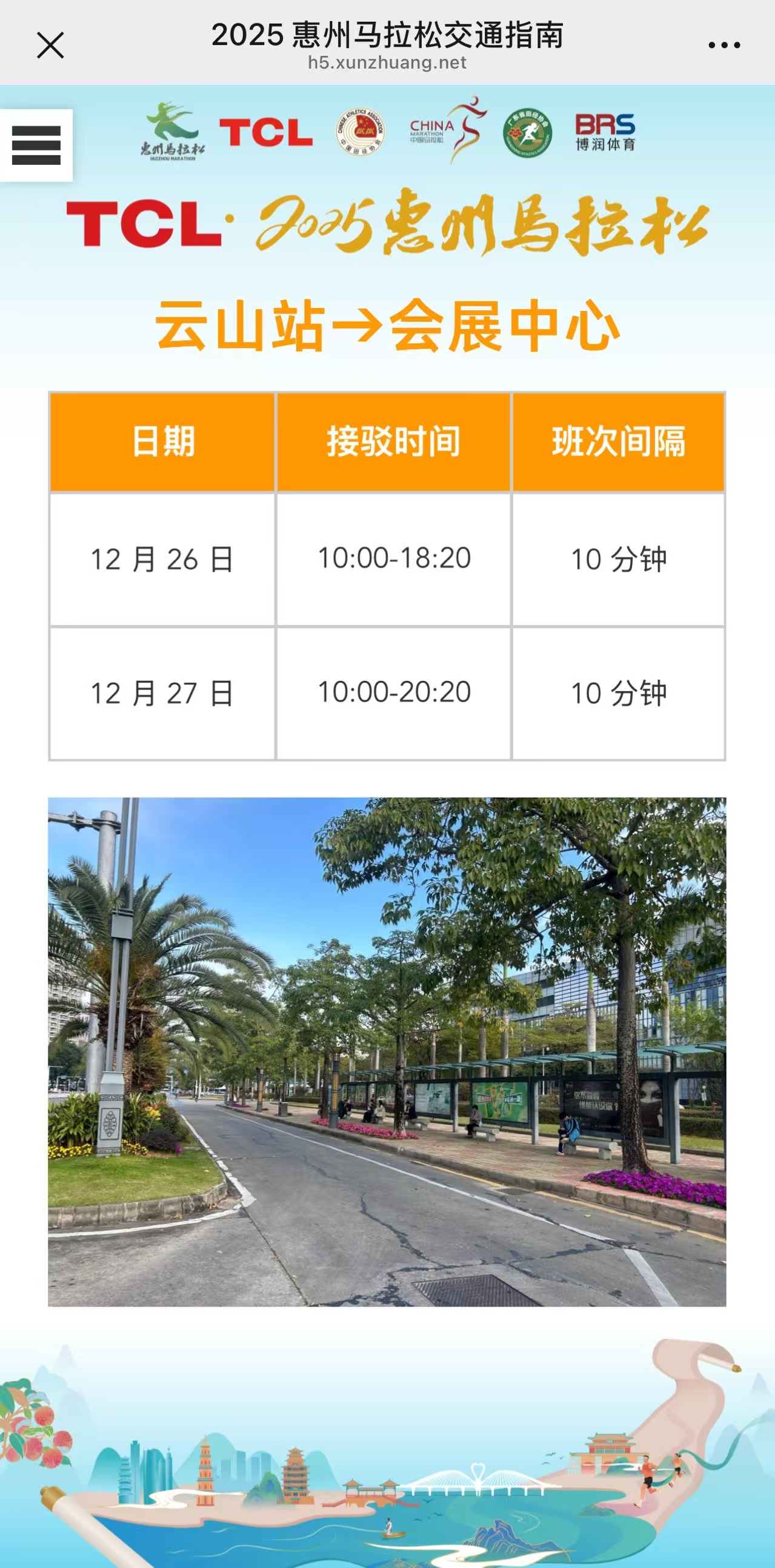 TCL·2025惠州馬拉松在平潭機(jī)場(chǎng)、 惠州北站、 惠州南站、 云山站安排接駁車(chē), 并由“小荔枝”志愿者提供接站服務(wù), 值得一提的是, 隨車(chē)“小荔枝”導(dǎo)游講解惠州風(fēng)土人情(除云山站,均有設(shè)置)。