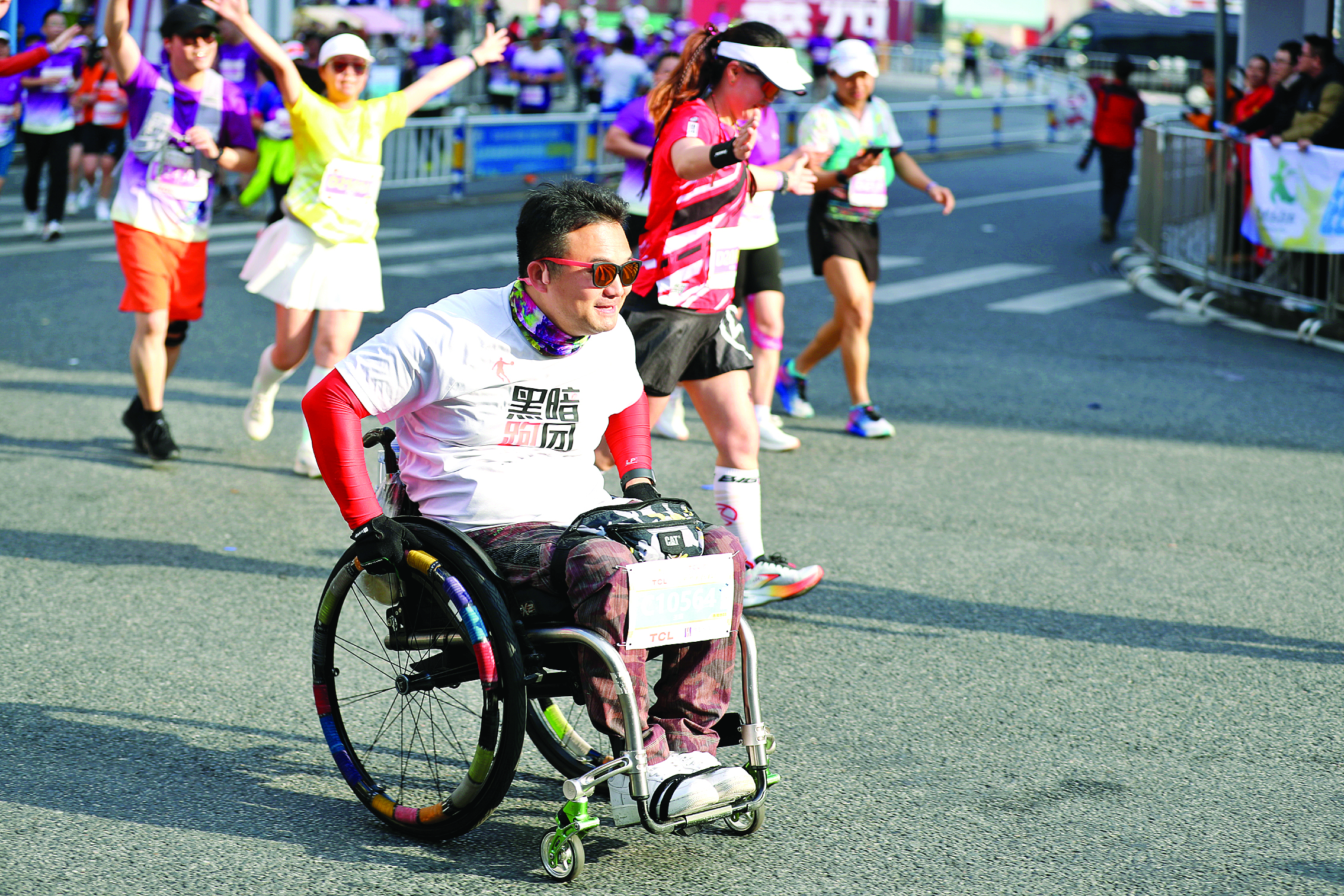 5小時(shí)21分,已沖線的葉建華劃著輪椅返回賽道,等著同樣劃輪椅準(zhǔn)備沖刺的王璟。30多秒后,兩位輪椅選手并排“劃過(guò)”終點(diǎn)線,成功完賽全馬!斑@是2025年的收官之戰(zhàn),也是我們最好的禮物!蓖醐Z開(kāi)心地說(shuō)道。