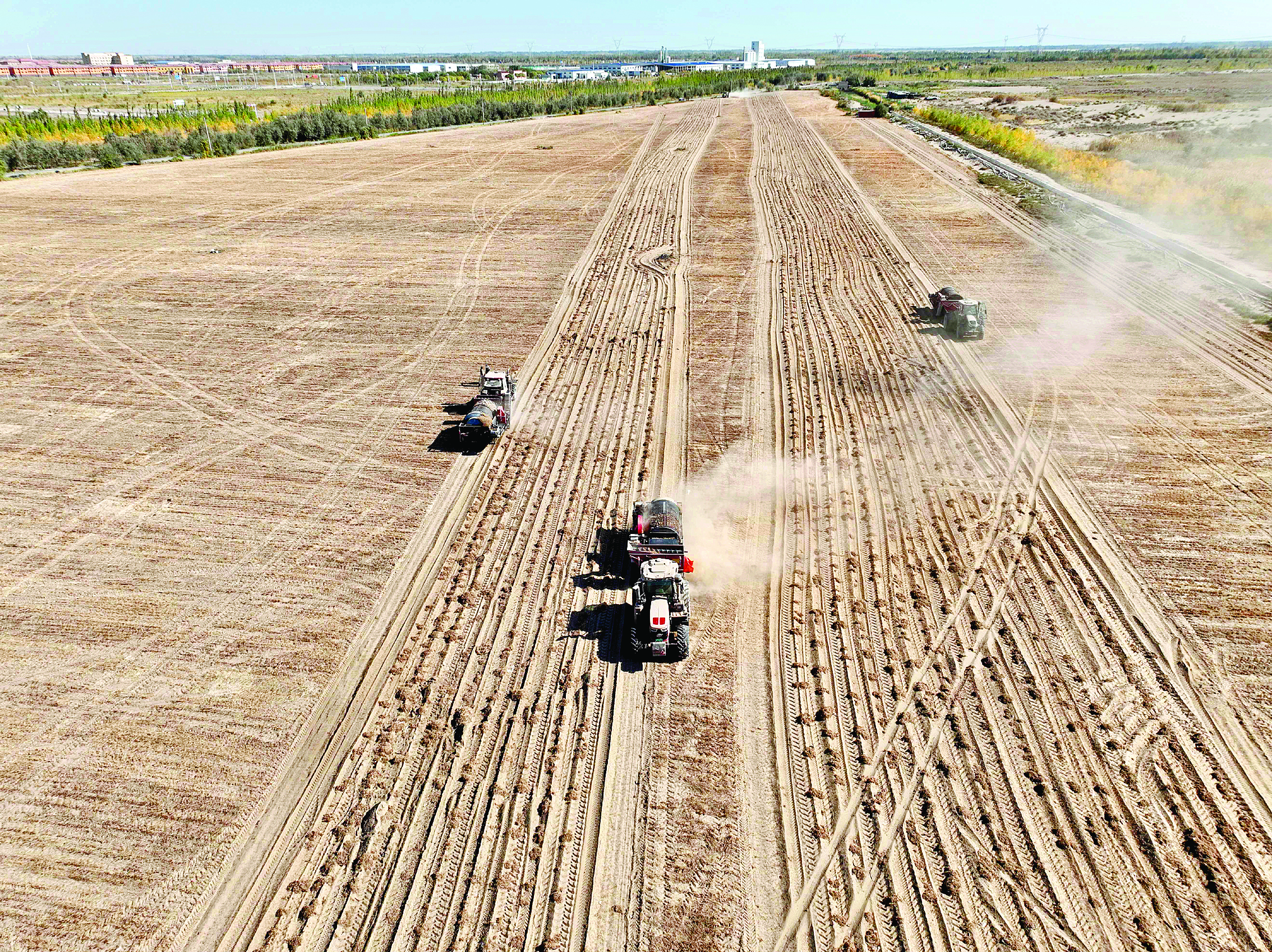 在沙漠里開(kāi)墾土地大規(guī)模種植油莎豆