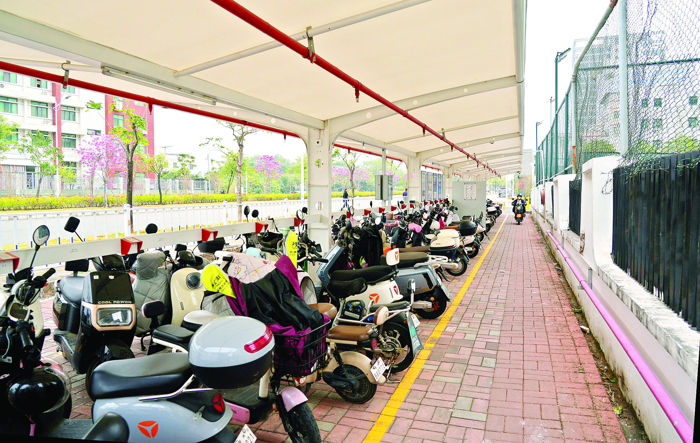 惠城區(qū)金世界花園新建成的電動(dòng)自行車充電區(qū)已投用;葜萑?qǐng)?bào)記者朱金贊 攝