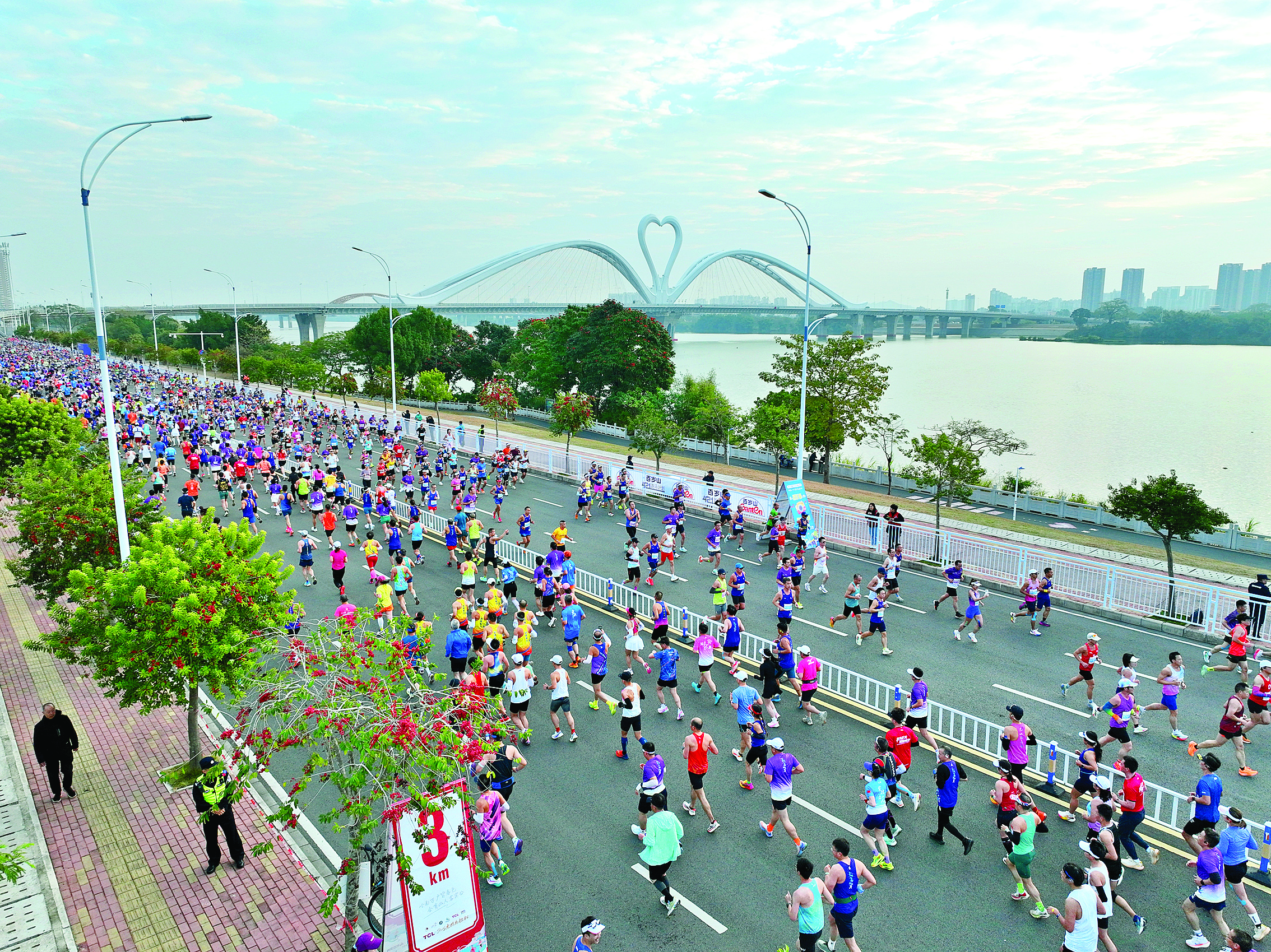馬拉松的活力,源于最廣泛的參與;葜菸拿鞯暮穸,植根于“人人關(guān)心、人人支持、人人參與”的生動局面。賽場上,跑者挑戰(zhàn)自我、不言放棄;賽場下,惠州大批志愿者和眾多志愿服務組織共同構(gòu)成了另一道流動的風景線;葜蓠R拉松堅持“綠色賽事”理念,賽事組委會攜手惠州市撿跑協(xié)會組織撿跑志愿者清理賽道,還特別發(fā)起“一杯到底零廢棄”行動,面向跑友招募近千人參加,將環(huán)保理念融入賽事每一個細節(jié),將環(huán)保行動與文明理念同步傳播。賽事還凝聚起更多青春的志愿服務力量,在物資分發(fā)、賽道服務、氛圍引導、終點協(xié)助等崗位上默默奉獻,用溫暖笑容與專業(yè)服務,寫下“惠馬溫度”最生動的注腳。這些凡人善舉,凝聚成惠州最堅實、最動人的道德基石,使文明的“蒲公英效應”在這片土地上生生不息。