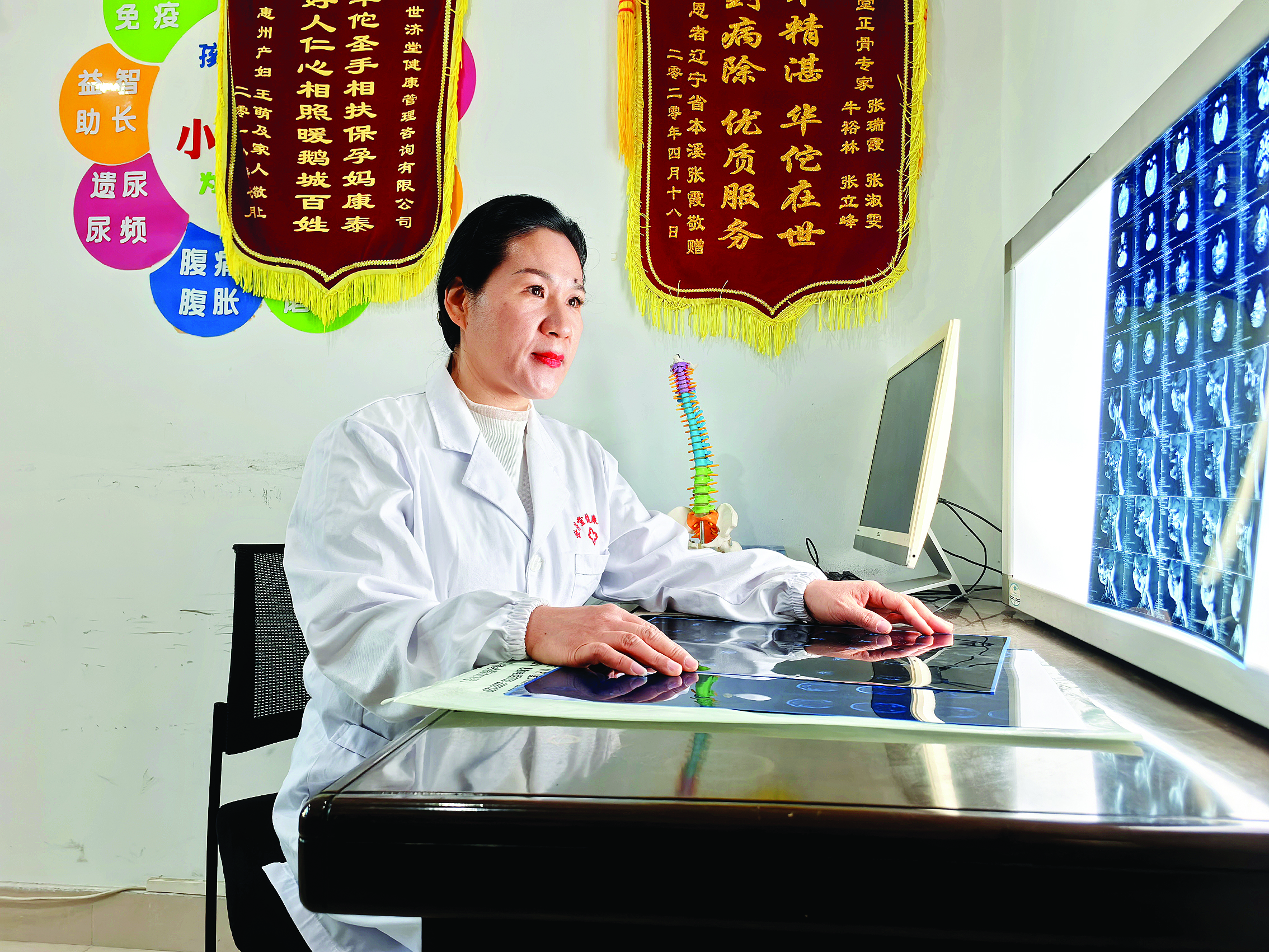 診室里彌漫著淡淡艾草香,一位脊椎側(cè)彎患者趴在治療床上,張瑞霞雙手輕推肩頸。“長(zhǎng)期伏案,頸椎已經(jīng)變形了!彼p聲說,“平時(shí)要多活動(dòng)!