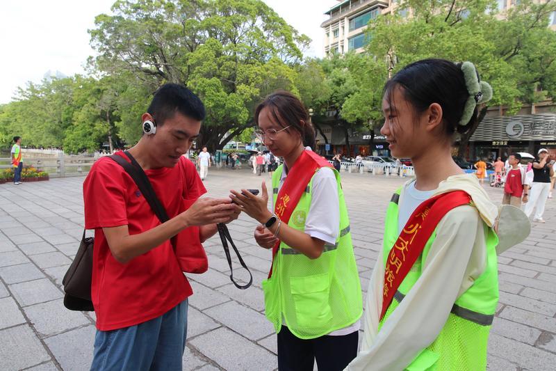 志愿者在西湖景區(qū)為游客服務(wù)。