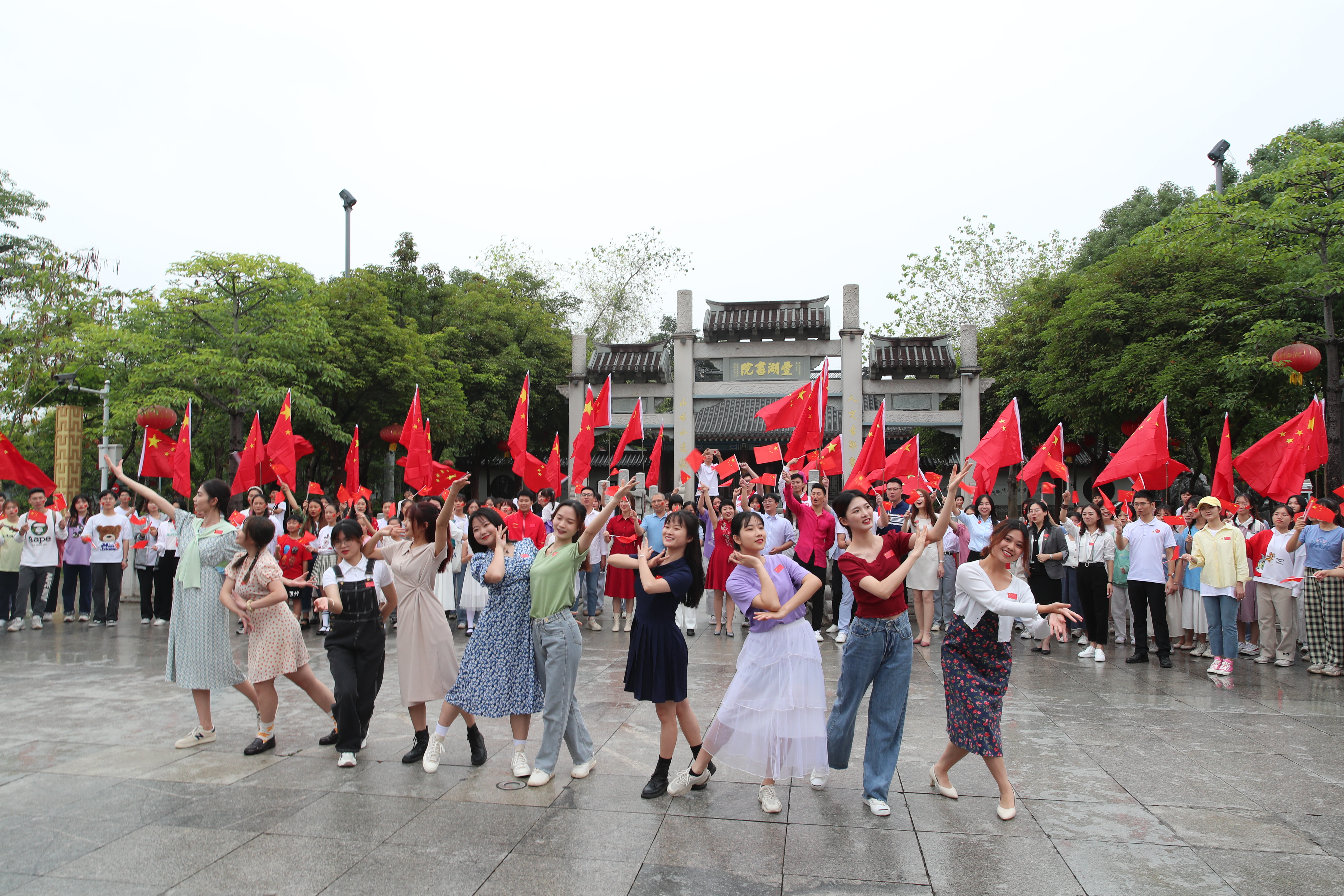 在市區(qū)豐湖書院舉行的“五四”快閃活動(dòng)。