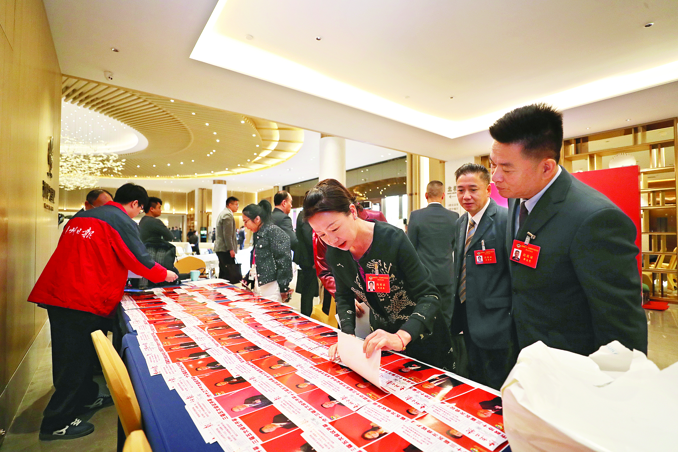 政協(xié)委員在挑選自己上“頭條”的照片。惠州日報(bào)記者張藝明 攝