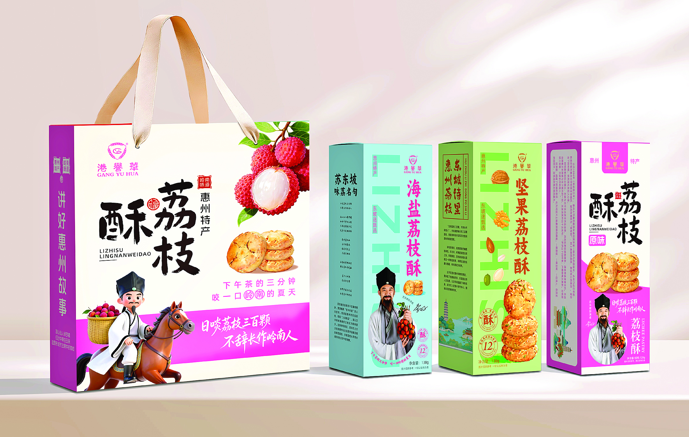 記者在現(xiàn)場展區(qū)看到,這款荔枝酥有三個品種:原味荔枝酥、海鹽荔枝酥、堅(jiān)果荔枝酥,分別對應(yīng)不同的口味,將惠州山海風(fēng)物融入其中。