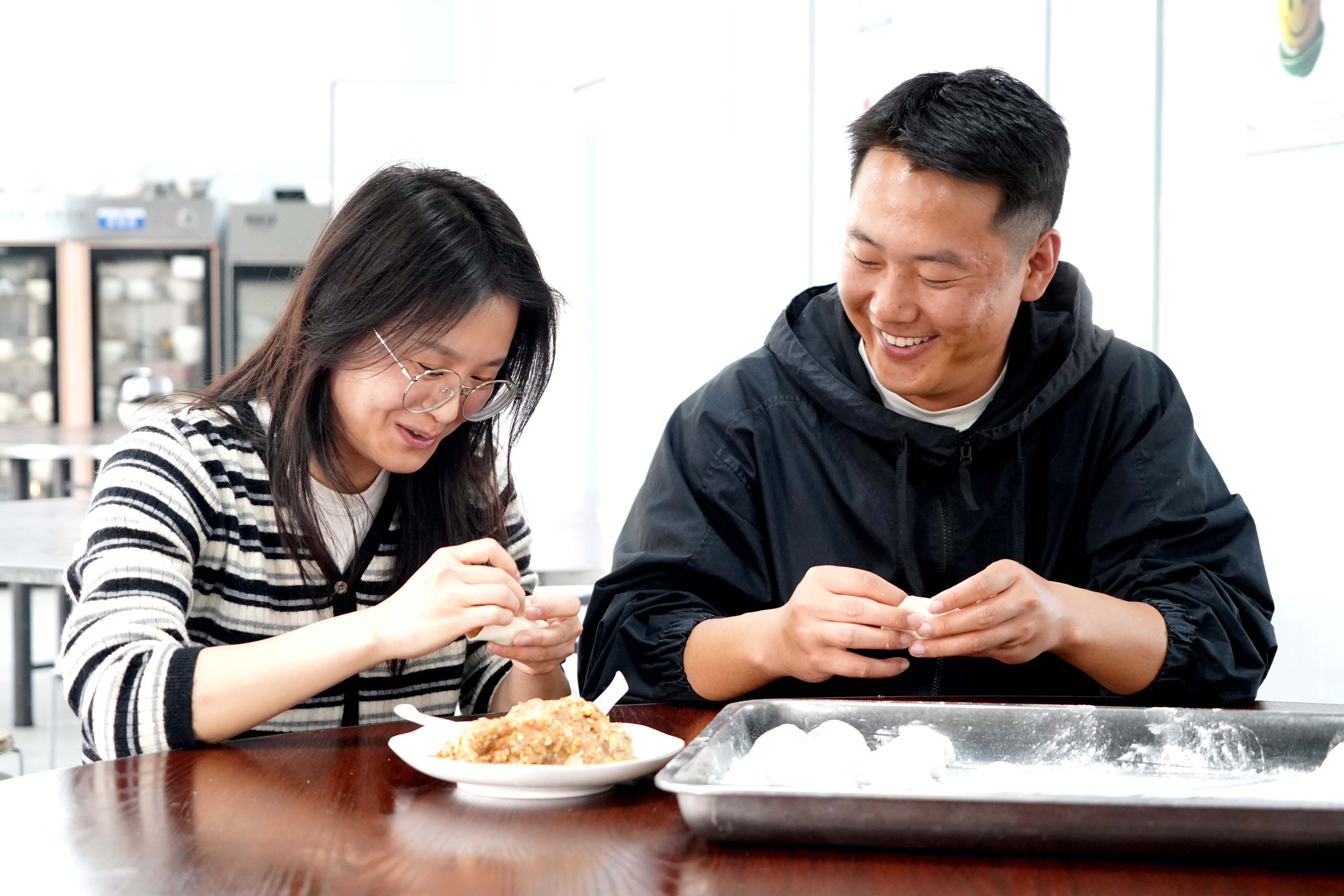 當千家萬戶沉浸在團圓的喜悅中,在惠陽區(qū)秋長街道的惠坪高速公路項目三標段,同樣洋溢著濃濃的年味。餐廳里,來自江蘇的技術(shù)員左立業(yè)和從陜西遠道而來的女友何銳,正一邊包餃子,一邊笑著交談,面皮裹住餡料,也裹住了兩人跨越千里的陪伴與支持。