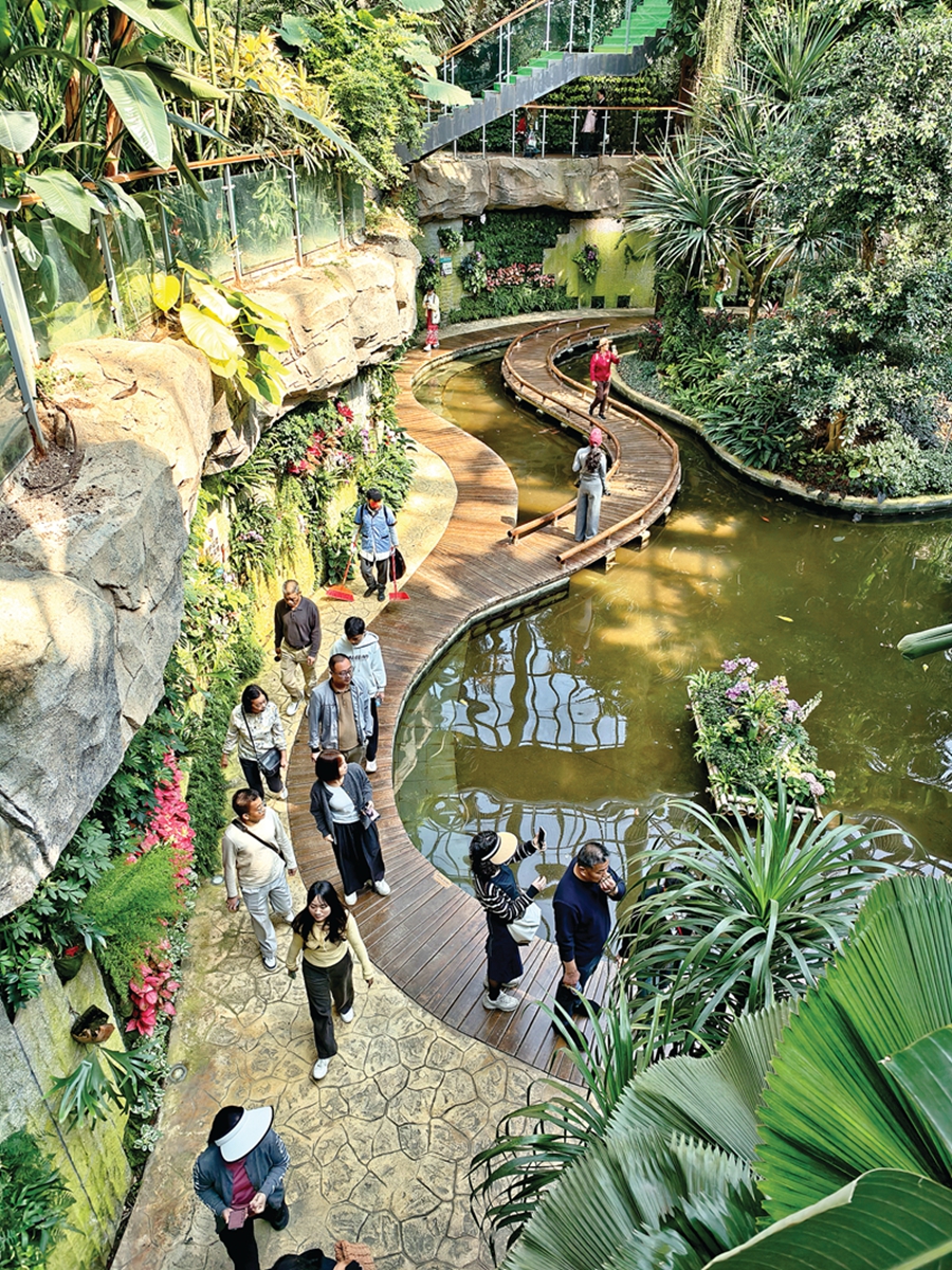 “春節(jié)期間,人氣很旺,大年初一入園客流有3萬人次!被葜葜参飯@管理服務(wù)中心相關(guān)負(fù)責(zé)人介紹,從大年初一開始,惠州植物園人流量不斷增大。廣大游客比較關(guān)注嶺南特色花卉展示以及花景藝術(shù),其中特色花卉有30余種,包括音符花、金紅花、五彩芋等。