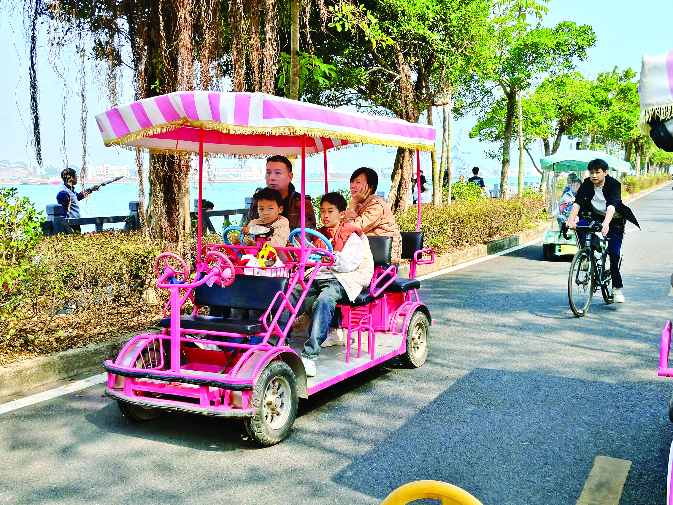 衙前綠道作為濱海旅游的重要節(jié)點(diǎn),升級(jí)改造后顏值與功能雙提升,成為市民日常鍛煉、游客打卡休閑的熱門目的地!熬G道修好了,停車場等配套也更完善,整體環(huán)境大變樣,游客一天比一天多!毖们按宥嗉易赓U商戶坦言,春節(jié)期間,自行車、電動(dòng)車租賃生意格外火爆,綠道的提質(zhì)升級(jí),真正讓經(jīng)營者嘗到了甜頭。
