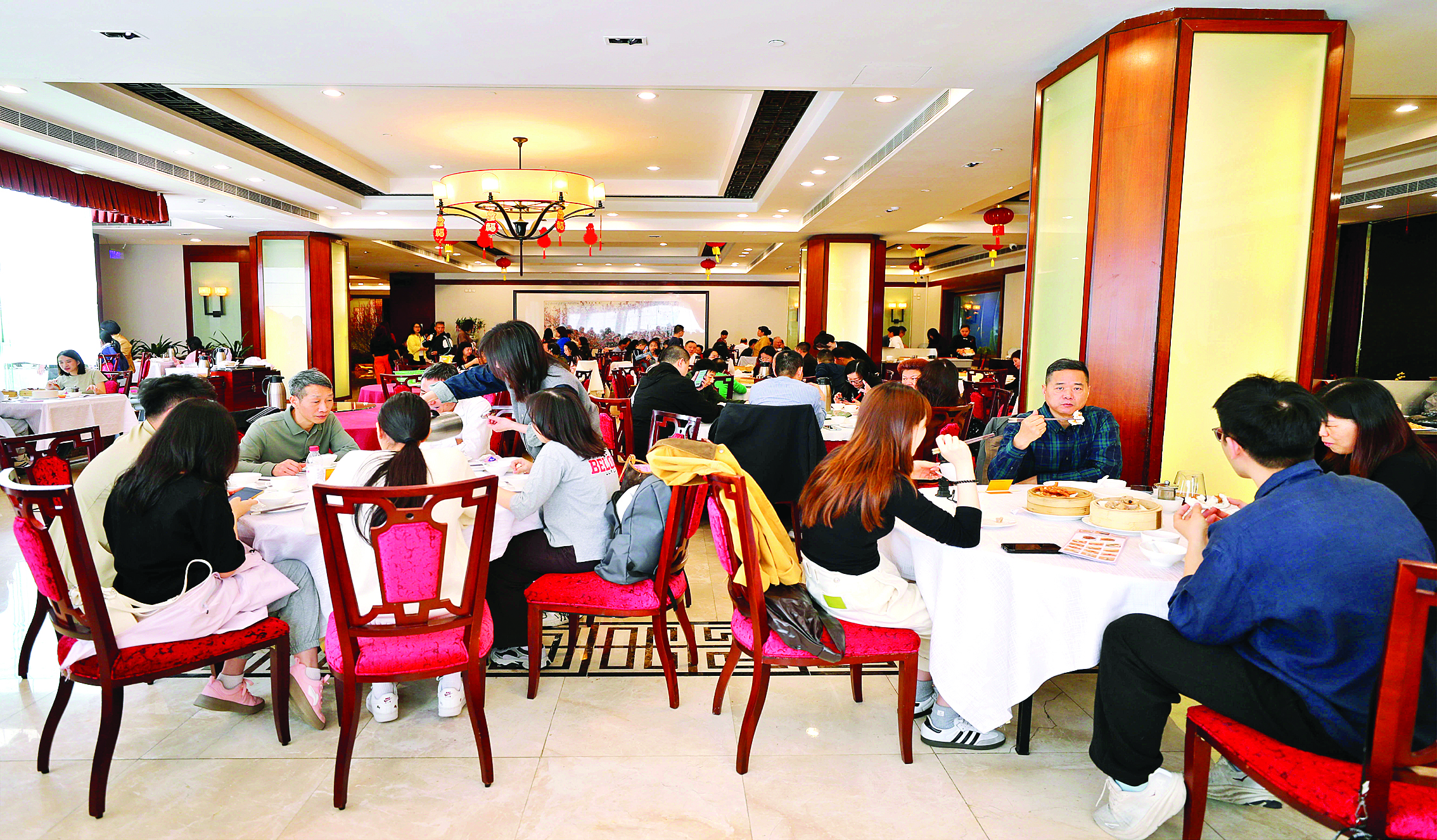春節(jié)期間,酒店早茶人氣旺;葜萑請笥浾邨罱I(yè) 攝