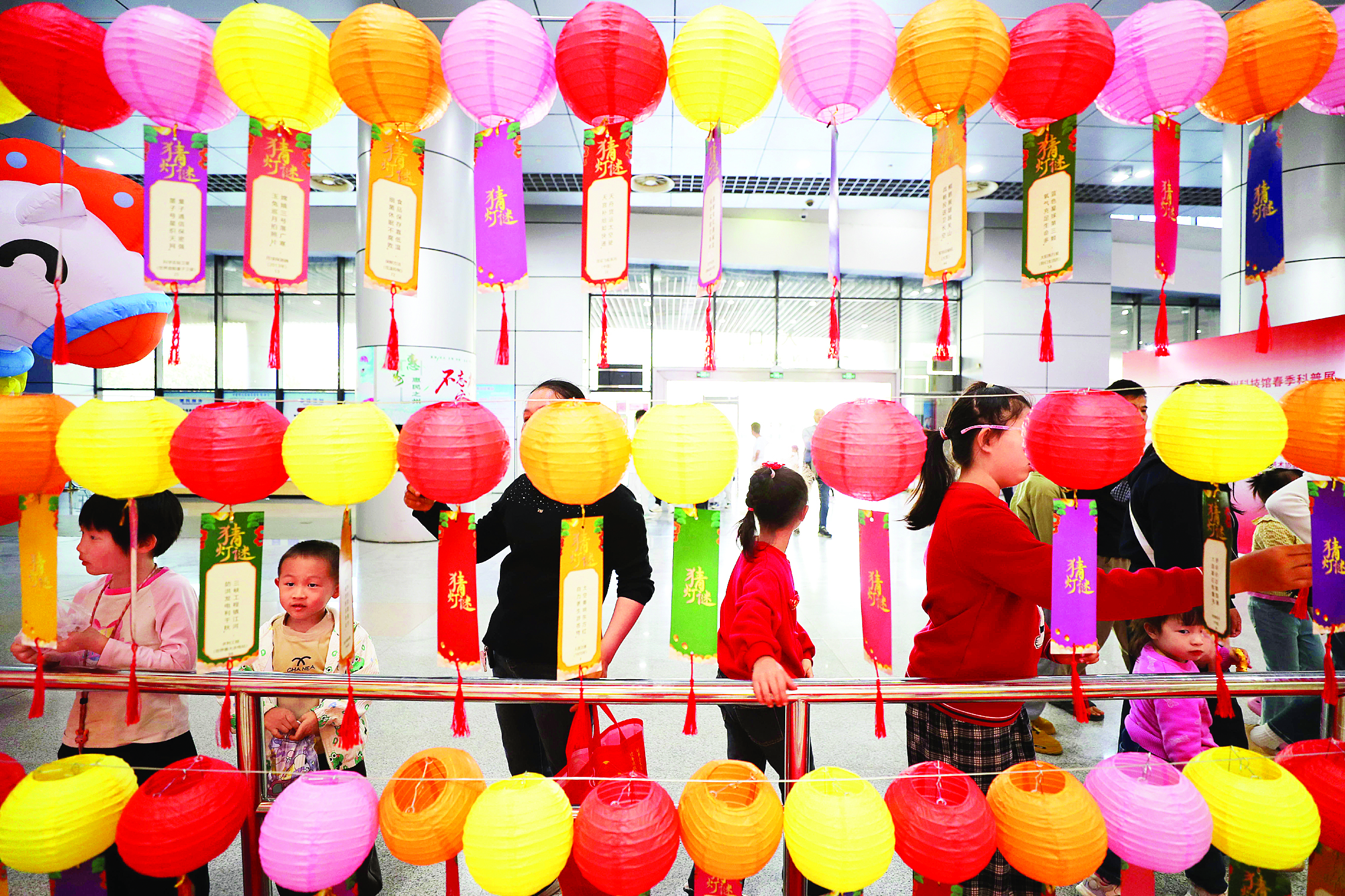 春節(jié)期間,惠州科技館舉行猜燈謎活動。