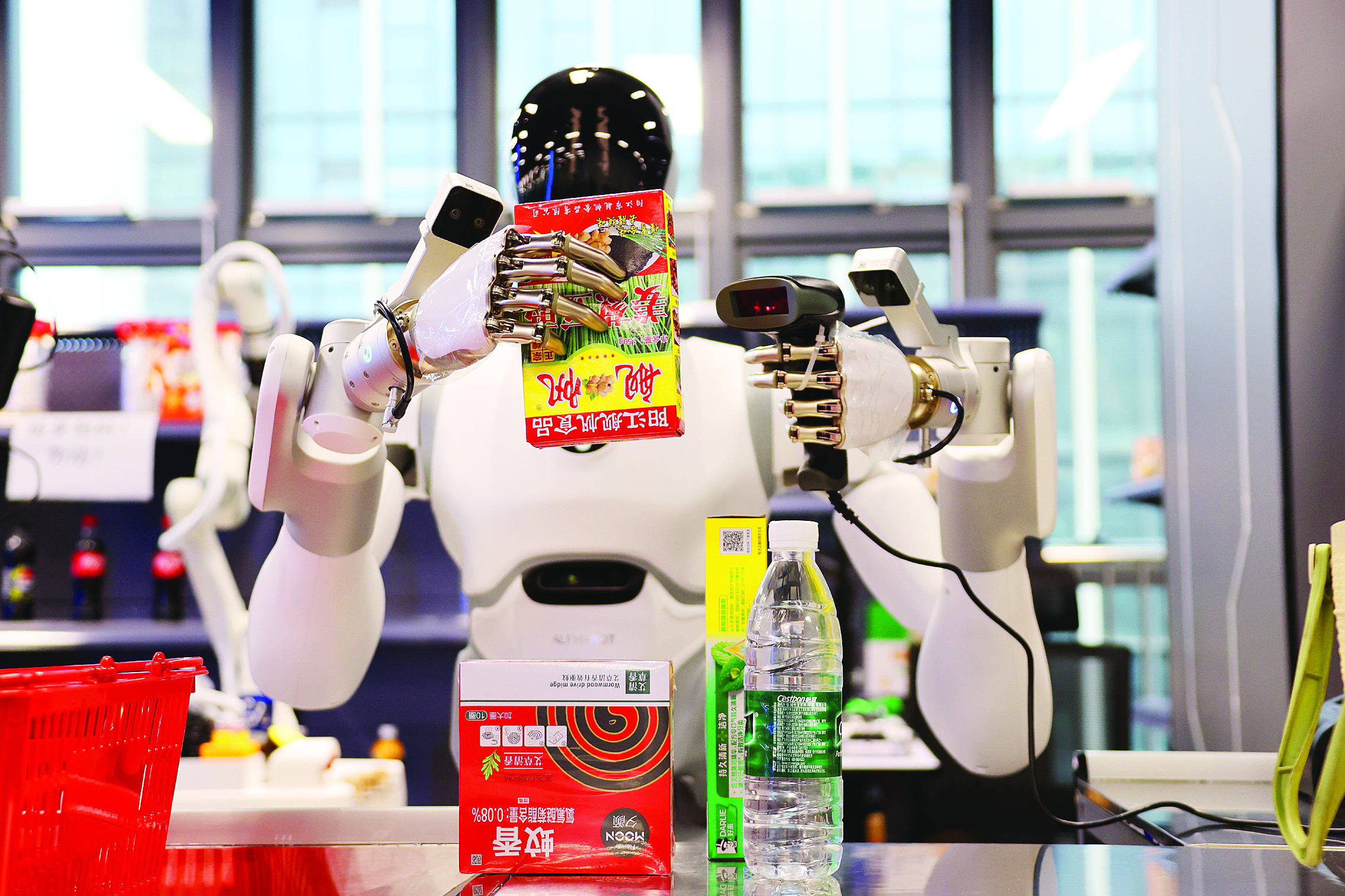 機器人數(shù)據(jù)采集員訓(xùn)練人形機器人模擬人類動作,在超市掃碼收銀,并采集相關(guān)數(shù)據(jù)。