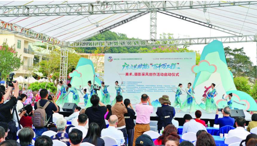 春和景明,藝潤(rùn)?quán)l(xiāng)土。日前,廣東文藝賦能“百千萬(wàn)工程”——美術(shù)、攝影采風(fēng)創(chuàng)作活動(dòng)啟動(dòng)儀式在惠州市龍門(mén)縣麻榨鎮(zhèn)中心村舉行。本次活動(dòng)由廣東省文學(xué)藝術(shù)界聯(lián)合會(huì)主辦,省美術(shù)家協(xié)會(huì)、省攝影家協(xié)會(huì)、省文藝志愿者協(xié)會(huì)、南方農(nóng)村報(bào)、廣州美術(shù)學(xué)院、廣東畫(huà)院、惠州市文聯(lián)、龍門(mén)縣文明辦、龍門(mén)縣文聯(lián)及麻榨鎮(zhèn)黨委共同承辦,以文藝形式展現(xiàn)“百千萬(wàn)工程”的建設(shè)成果。啟動(dòng)儀式現(xiàn)場(chǎng)同步舉行“三三行動(dòng)”新時(shí)代文明實(shí)踐文藝志愿服務(wù)助力“百千萬(wàn)工程”成果展演。