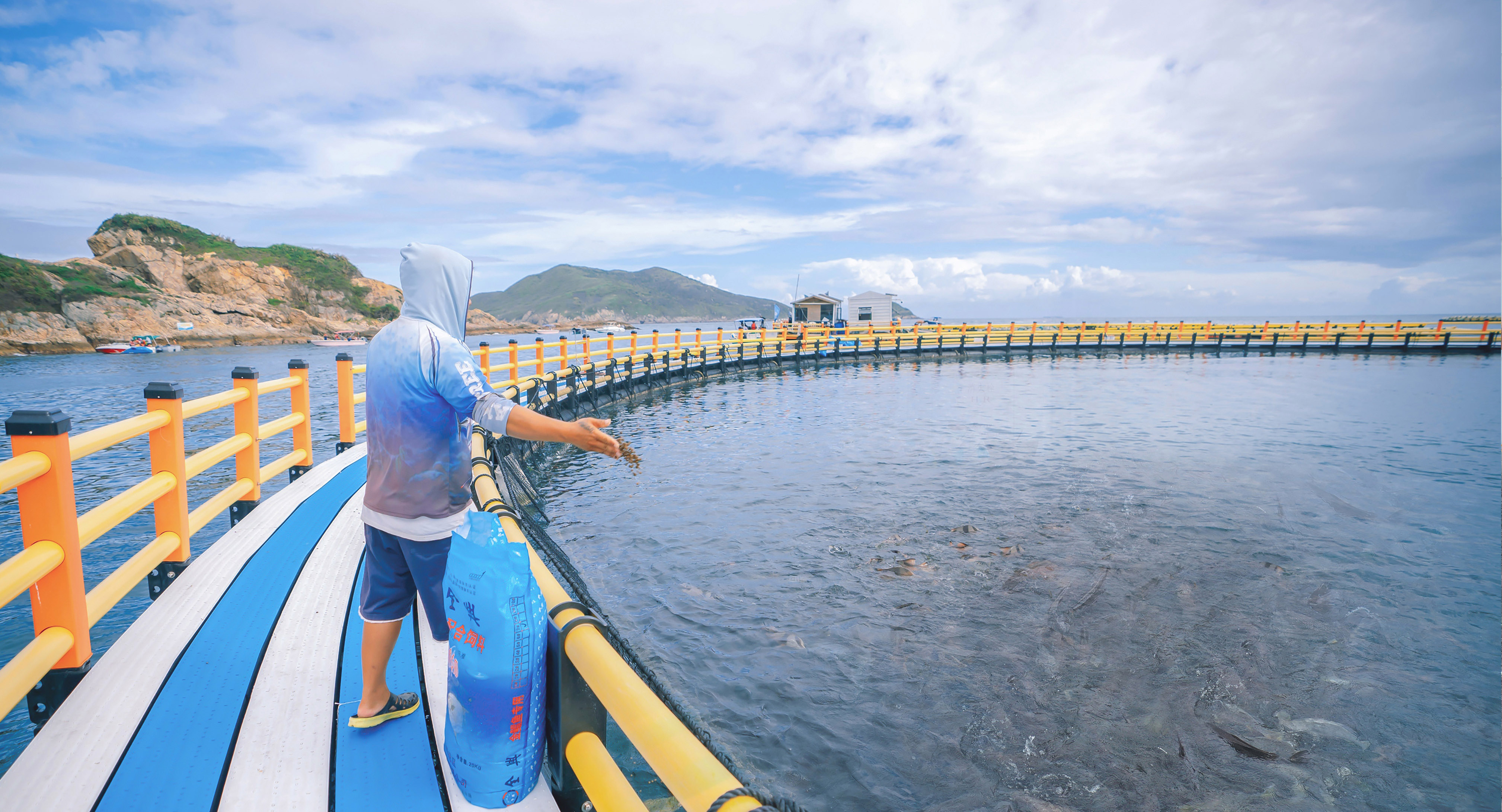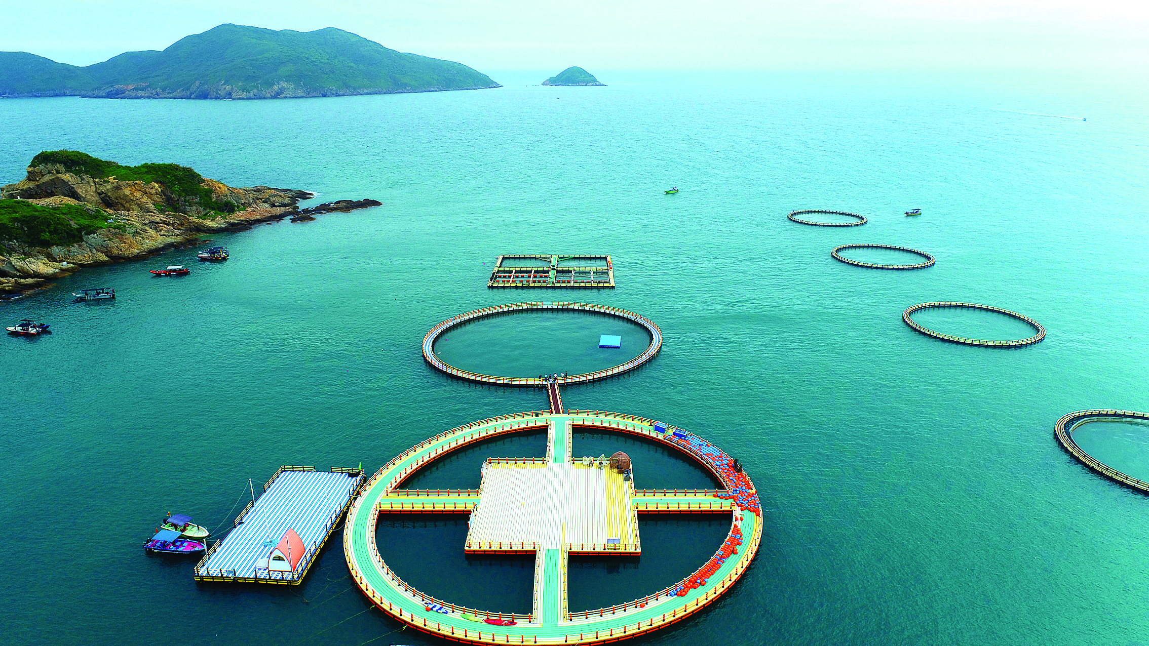 位于港口小星山附近的一方海(廣東)深海網(wǎng)箱;葜萑請笥浾邨罱I(yè) 攝