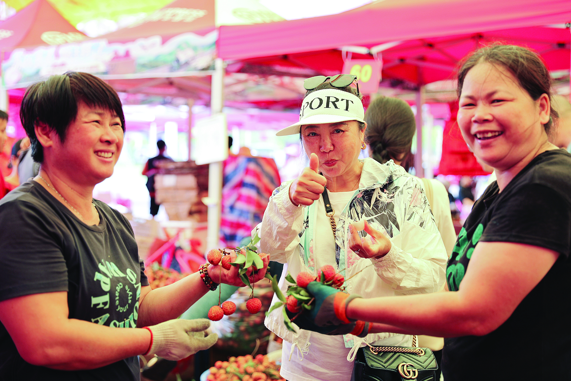 游客為鎮(zhèn)隆荔枝點贊。惠州東江圖片社提供