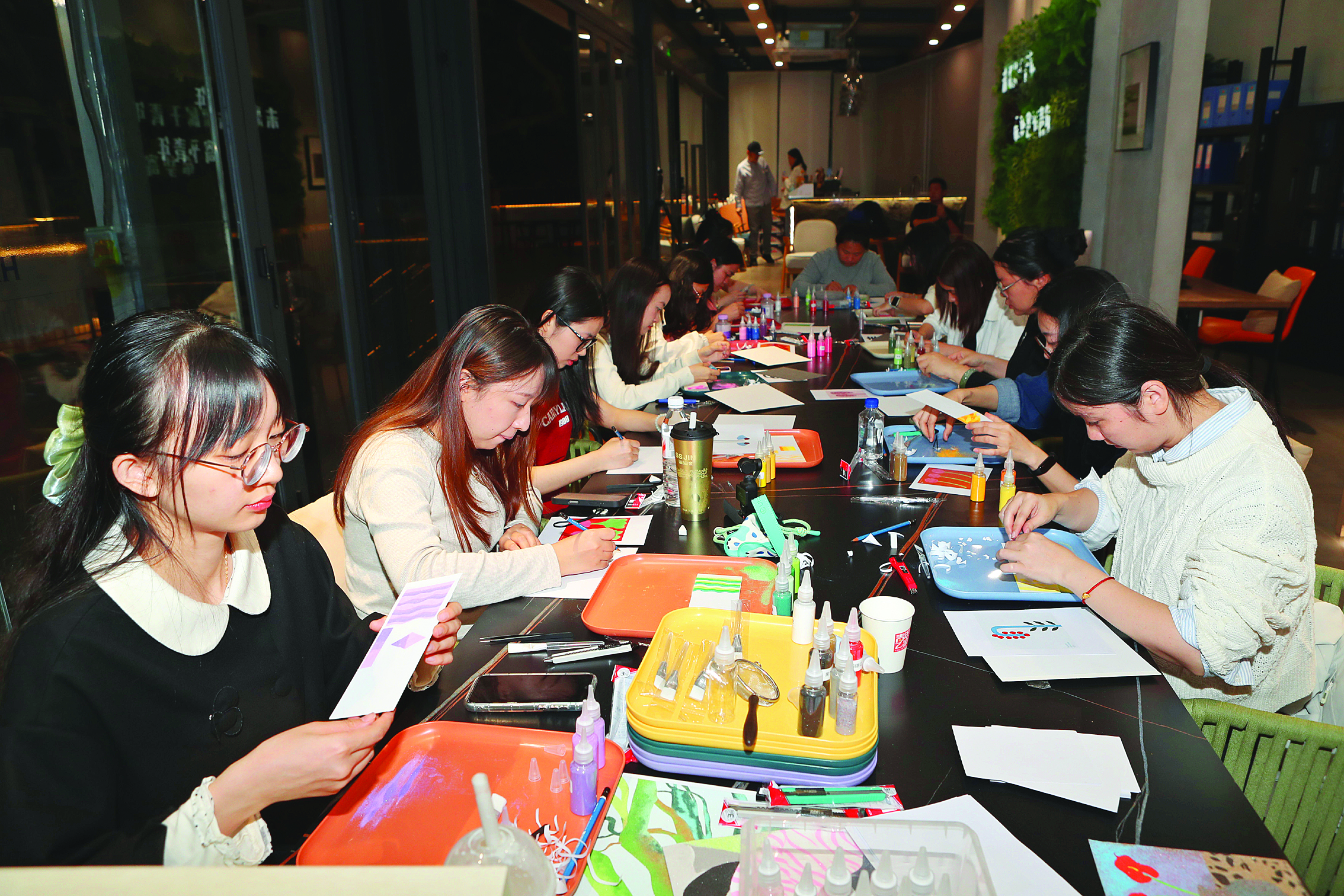 細(xì)沙流淌,創(chuàng)意成型。課堂現(xiàn)場,學(xué)員們根據(jù)老師的指導(dǎo)進(jìn)行創(chuàng)作!斑@是我第二次來夜校上課,上次學(xué)彩鉛,這次挑戰(zhàn)沙畫!睂W(xué)員楊慧穎笑著分享,“工作忙碌時(shí),能在這里靜下心來創(chuàng)作,找到久違的平靜,這種充實(shí)感特別珍貴!彼主動(dòng)邀約朋友,期待更多人走進(jìn)夜校,共享學(xué)習(xí)樂趣。