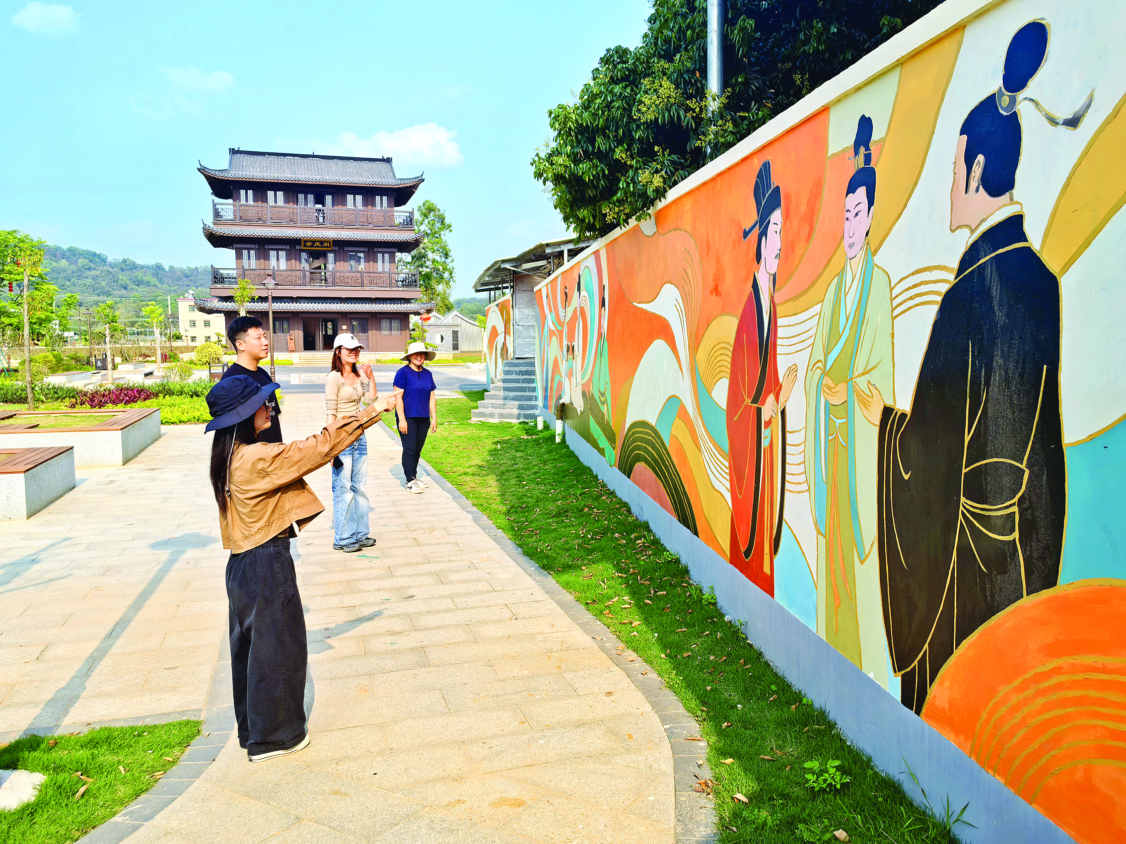 “小時候聽老人講的忠孝廉潔故事,如今被年輕藝術家繪在墻上,格外鮮活!鼻安痪,在博羅縣泰美鎮(zhèn)車村村,廣州美術學院的師生將明代御史車邦佑清廉履職故事精心創(chuàng)繪于廉潔墻上,人物莊重、細節(jié)考究,村民們紛紛駐足觀看,忍不住稱贊。