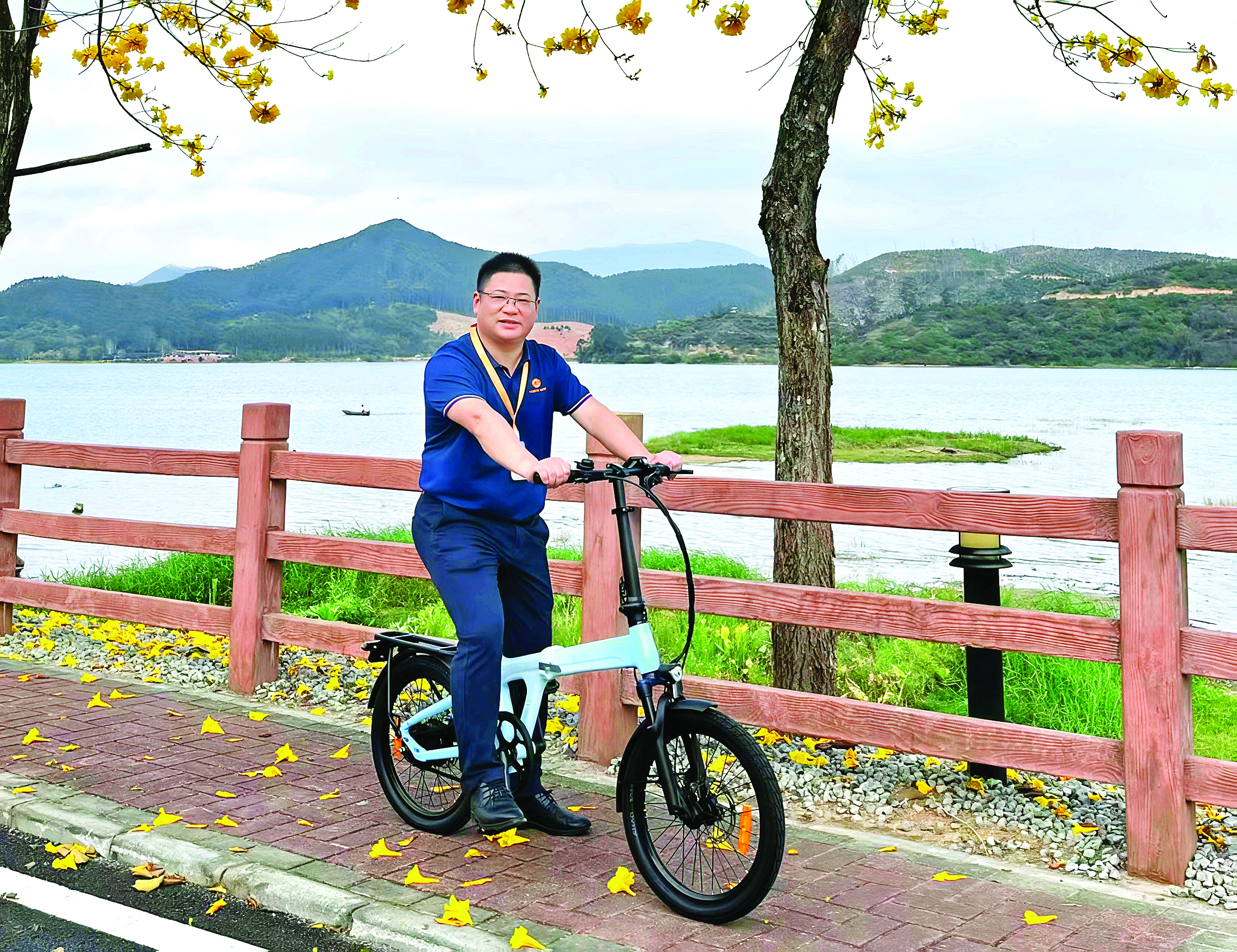 機會來了。環(huán)南昆山—羅浮山縣鎮(zhèn)村高質(zhì)量發(fā)展引領(lǐng)區(qū)的規(guī)劃,讓我眼前一亮。顯崗水庫這片山水,湖山交錯、地形起伏,簡直就是電助力自行車的“天然體驗場”。去年4月,我們和市產(chǎn)投集團開始規(guī)劃顯崗水庫騎行公園項目,總里程60公里,首期12公里于去年11月正式開放。