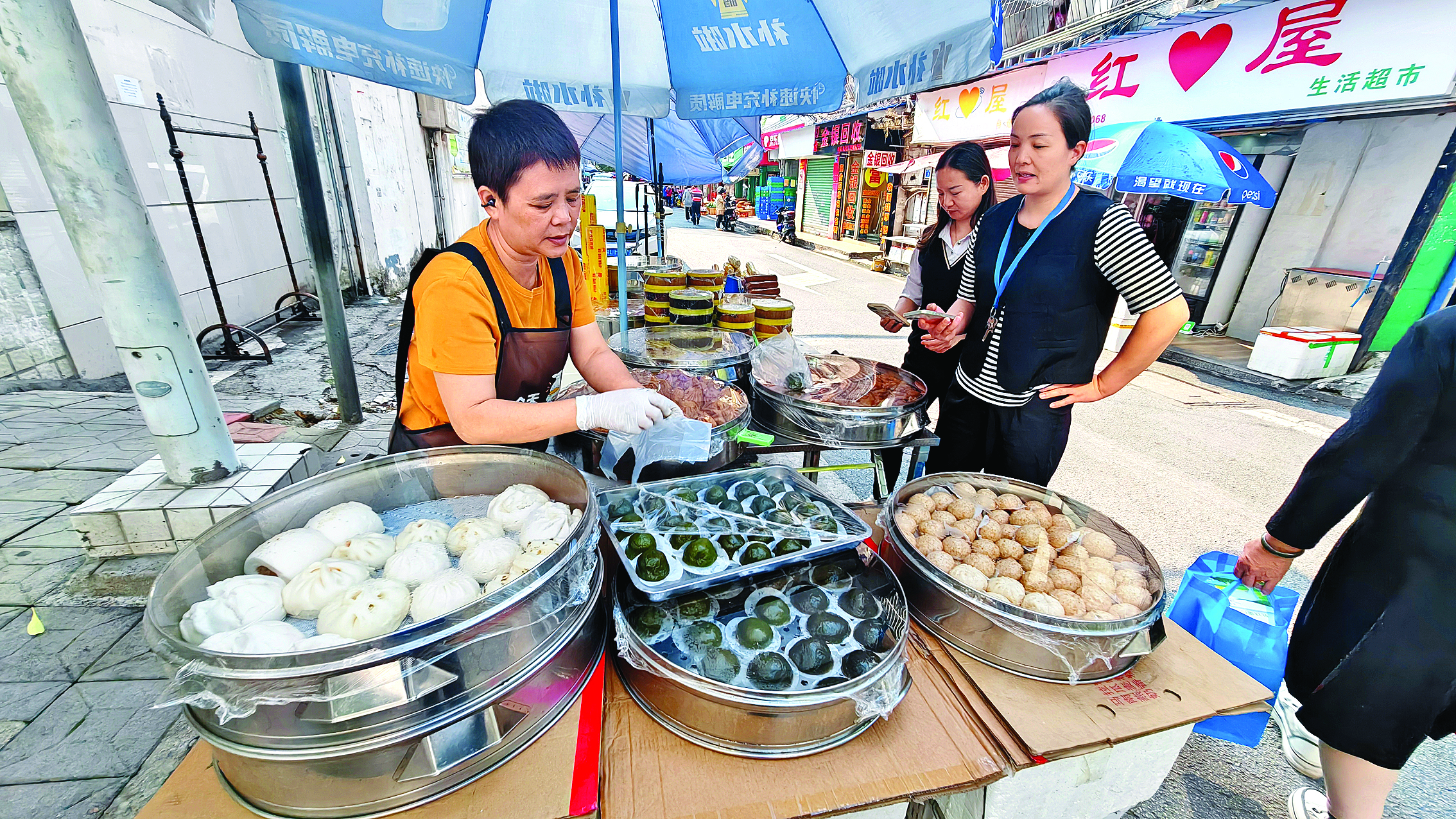 市民在市區(qū)老街選購艾粄與青團;葜萑請笥浾唏槆t 葉麗莎 攝