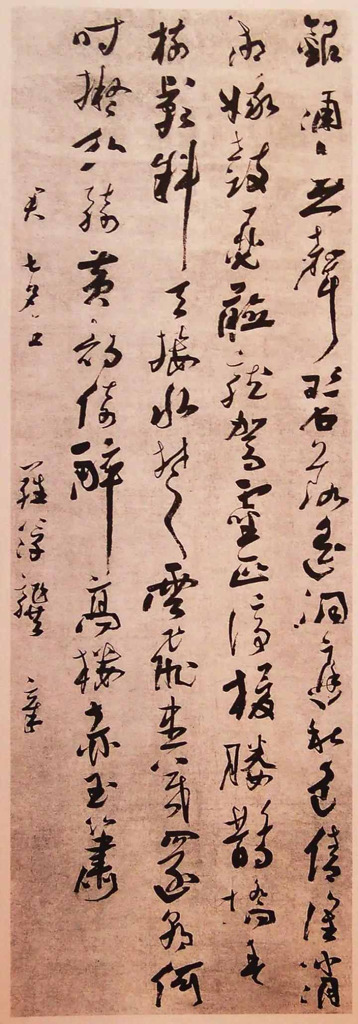 說到龔章書法淵源,論者多提及明末清初嶺南遺民書家彭睿瓘(號竹本)。對他的行草詩軸,林亞杰先生以為龔章“其書結(jié)體、草法,均與彭竹本相似”。(《廣東歷代書法圖錄》),陳永正先生更指其“拗折處取法彭竹本,而用筆飛騰變化之處,似更凌彭氏而上”,是“竹本派書家中最有成就”者(《嶺南書法史》)。廣州博物館藏彭氏書《七言詩二首》,第二首題為《送同人周藻思從章含五太史入都門》,可知彭睿瓘與龔章確曾有過交往,惜乎史料簡缺,二人具體關系以及其書法淵源目前尚難詳考。有意思的是,彭、龔二氏,都曾在清初嶺南書壇健筆縱橫,卻由于種種原因而埋沒草萊,幾乎成為歷史的“失蹤者”,現(xiàn)在竟又逐漸露出本真,走進人們的視線。天意如斯,令人感嘆。