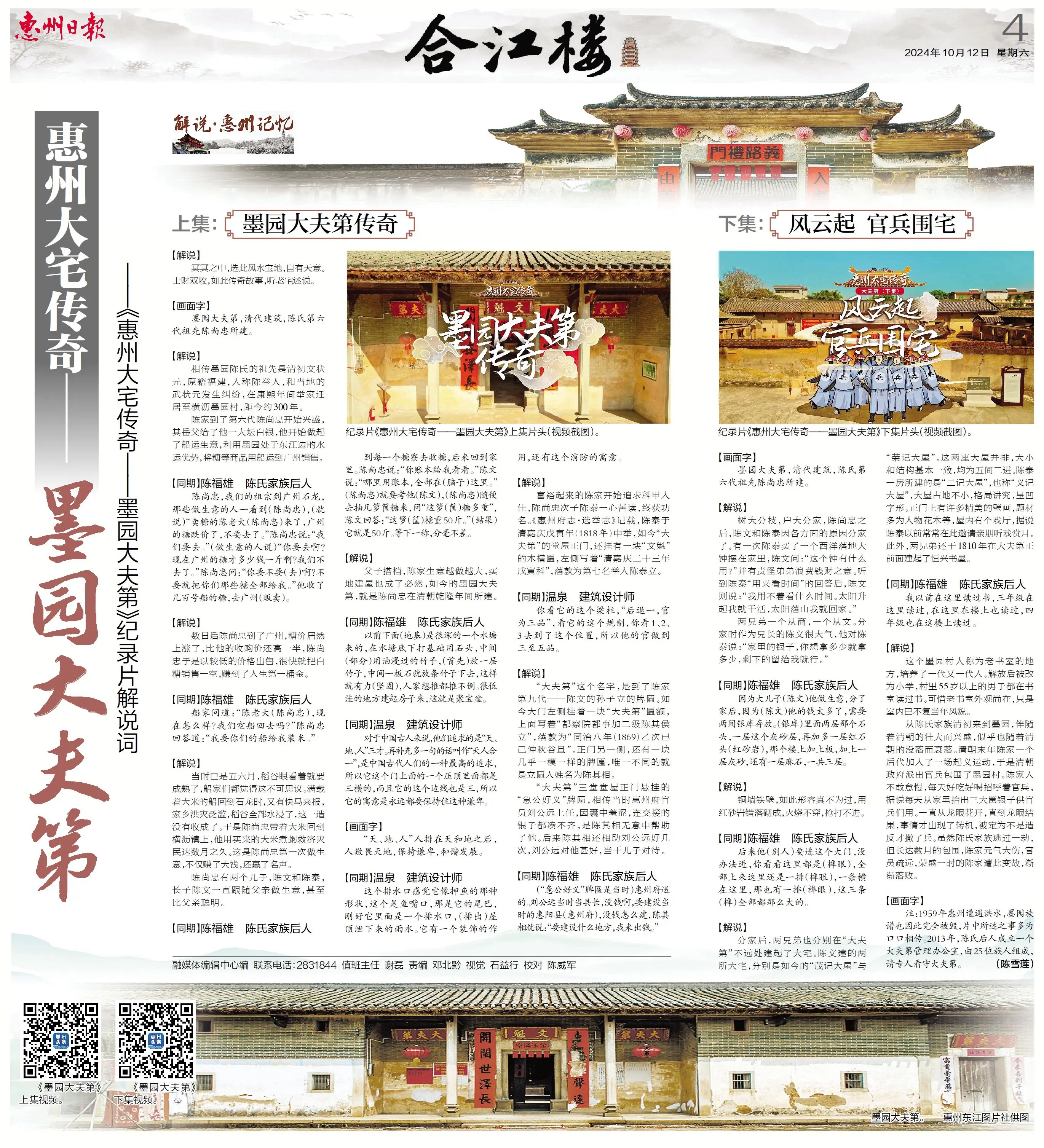 紀(jì)錄片《惠州大宅傳奇——墨園大夫第》下集片頭(視頻截圖)。
