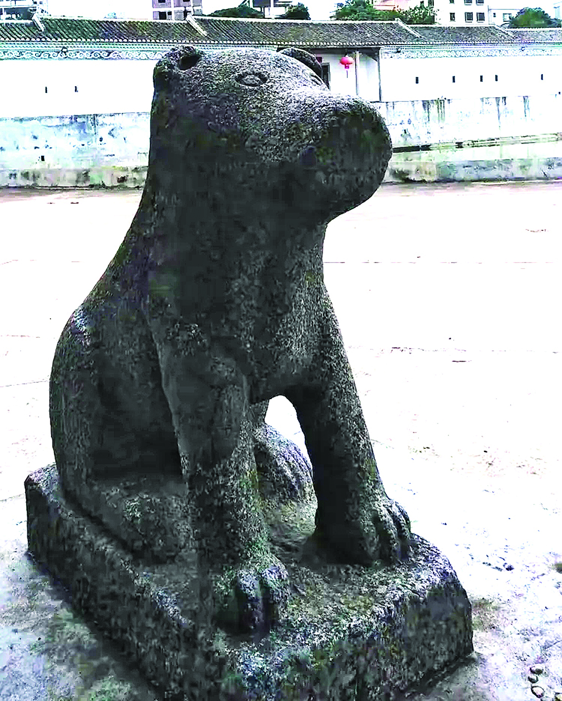 經(jīng)歷300多年歲月,石狗屋的守護(hù)神依然不離不棄。在屋右前方,蹲坐著一尊石狗,用一整塊麻石打造而成,表情溫順而堅(jiān)毅,凝望著前方。這是一尊有故事的石狗,和它守護(hù)著的圍屋一樣傳奇。