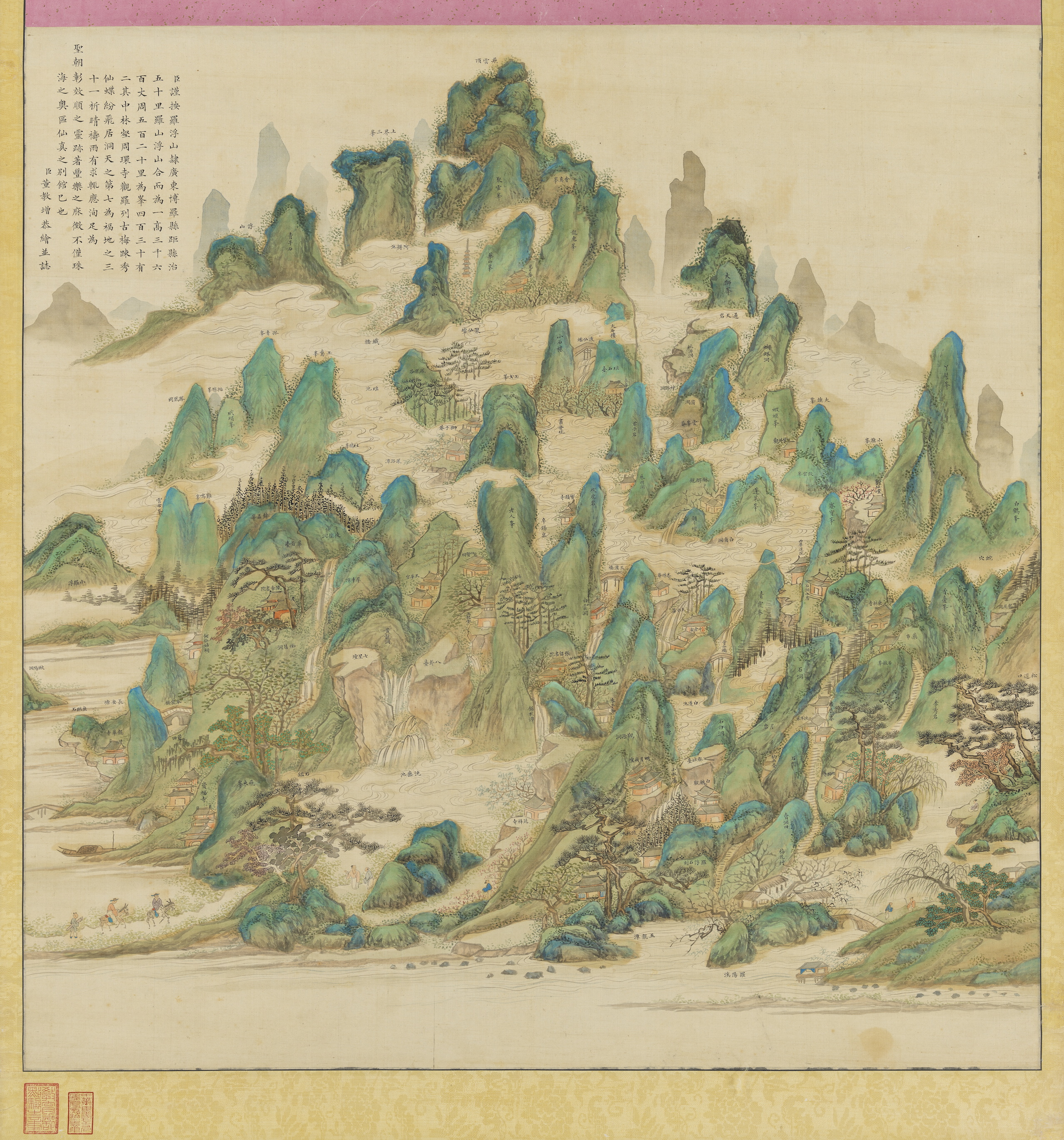嘉慶二十二年(1817),廣東巡撫董教增離任,進(jìn)京考績(jī)。他擅長(zhǎng)繪畫,曾游羅浮山,知道嘉慶帝對(duì)羅浮山很向往,特地繪制青綠山水《羅浮山圖》回京復(fù)命。
