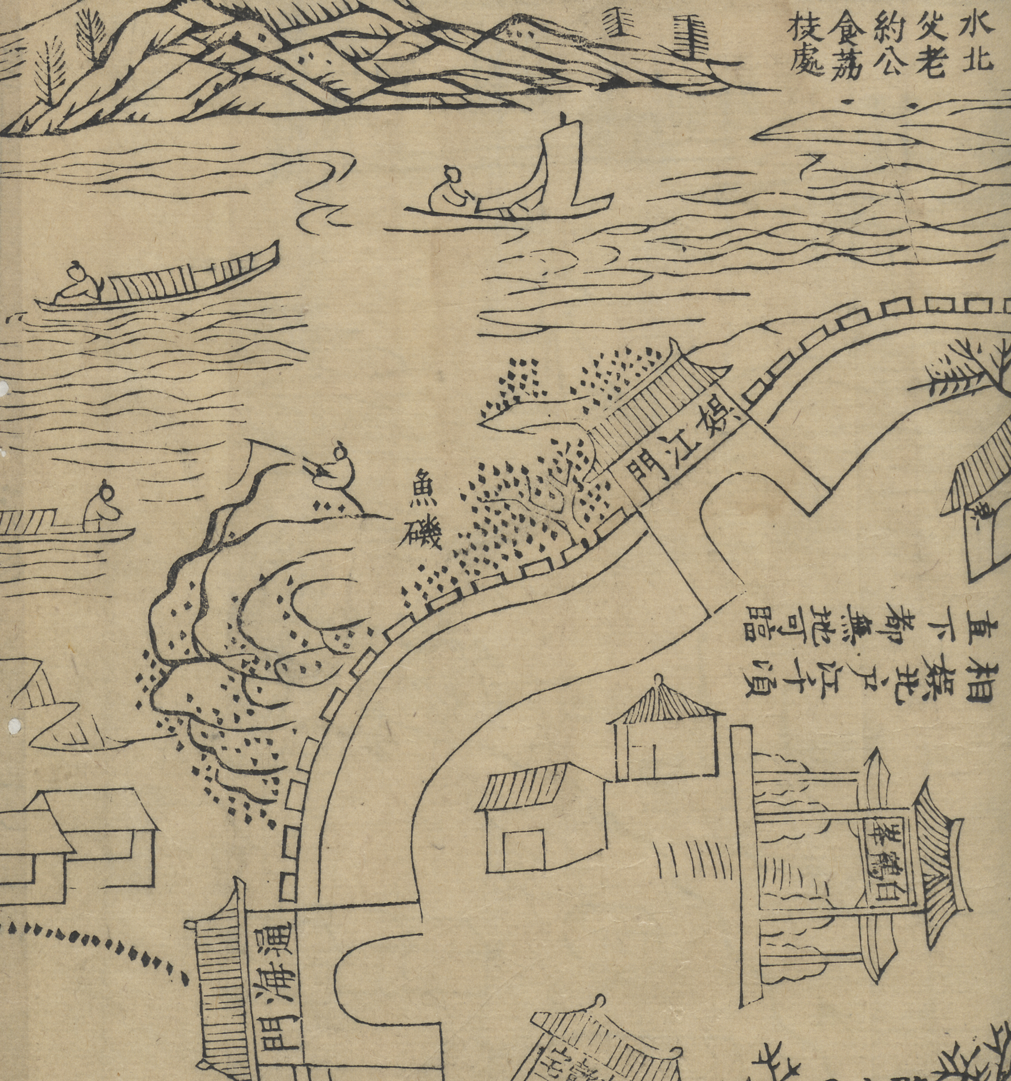 明崇禎《惠景全圖》中的“魚(yú)磯”,即東坡釣磯石。 本版圖片(除署名外) 由嚴(yán)藝超 翻拍
