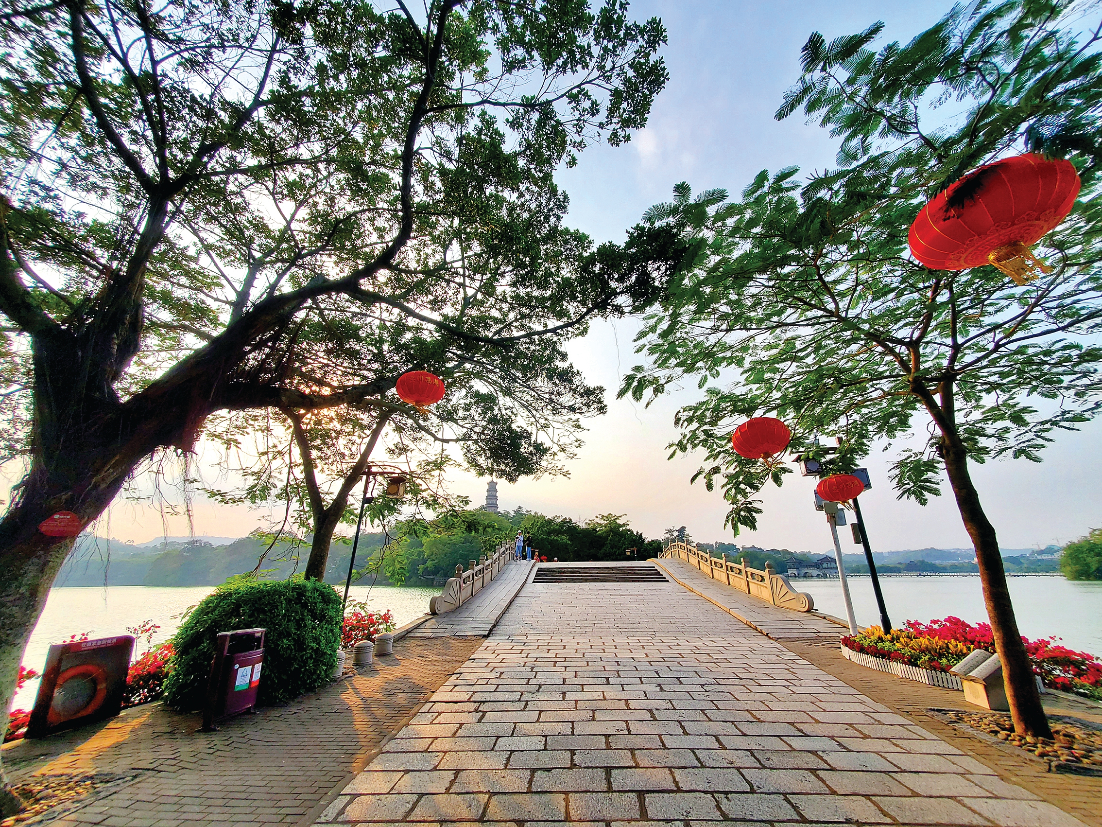 元宵上燈、賞燈的習(xí)俗傳承了千年。近年來,惠州西湖新春燈會積極弘揚(yáng)中華優(yōu)秀傳統(tǒng)文化和東坡寓惠文化,以“不辭長作嶺南人”“嶺南萬戶皆春色”等東坡詩句為主題,將科技元素與傳統(tǒng)習(xí)俗融合,觀展的海內(nèi)外游客絡(luò)繹不絕。如此節(jié)日盛況,蘇軾若在世,定會擊節(jié)稱賞。