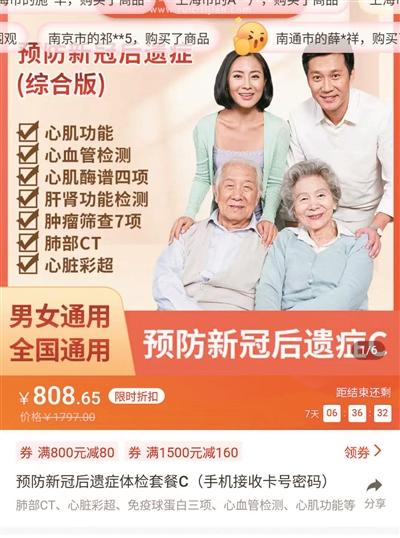 有機(jī)構(gòu)推出一款“陽(yáng)康體檢套餐”顯示賣出19萬件