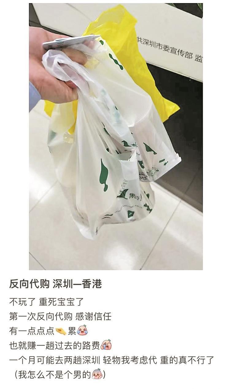 對于這個(gè)問題,小莉坦言:“只是每次回香港賺個(gè)車費(fèi)而已,但以后有了穩(wěn)定工作,可能就不做了。”她說自己不想專職做“反向代購”,因?yàn)樗狈Ψ(wěn)定性,同時(shí)又是一門吃力不討好的體力活。