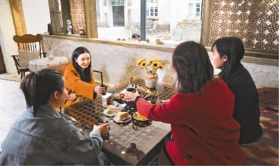 圖為在安徽省黃山市屯溪區(qū)的一處茶室內,一些年輕人在相聚品茶。新華社記者 杜 宇攝
