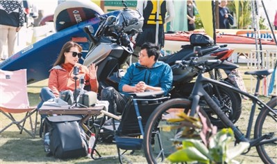 圖為兩名游客在露營裝備展區(qū)交流。唐旭騁攝(人民視覺)