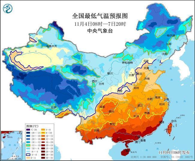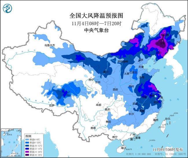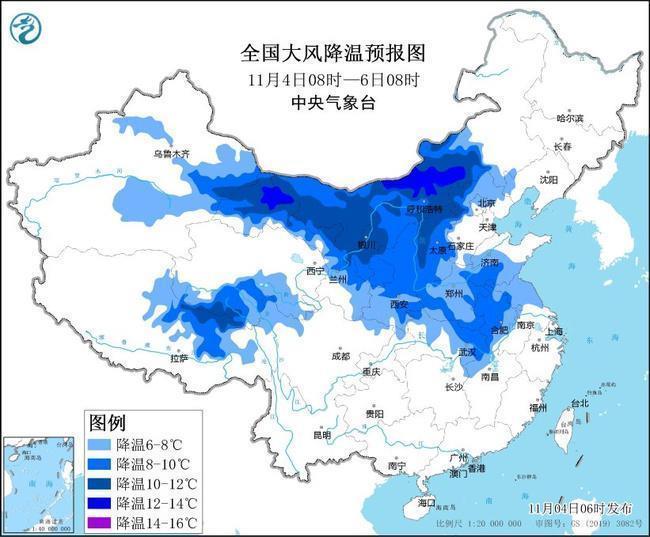 中央氣象臺11月4日06時繼續(xù)發(fā)布寒潮藍色預警: