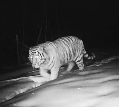 2023年4月13日凌晨,吉林延邊邊境管理支隊(duì)敬信邊境檢查站值班民警在視頻巡查時(shí)發(fā)現(xiàn),1只野生東北虎在琿春市解放軍營(yíng)區(qū)附近覓食。