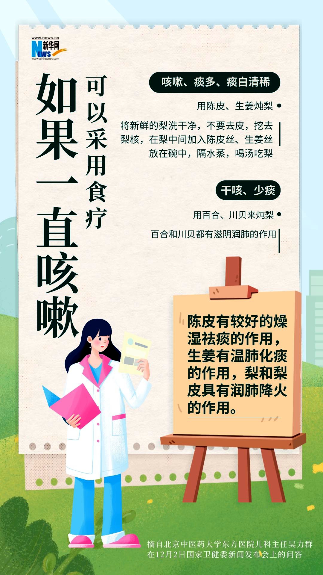 如果孩子咳嗽時間比較長,吳力群建議也可以采用食療的方法。具體如下 ↓