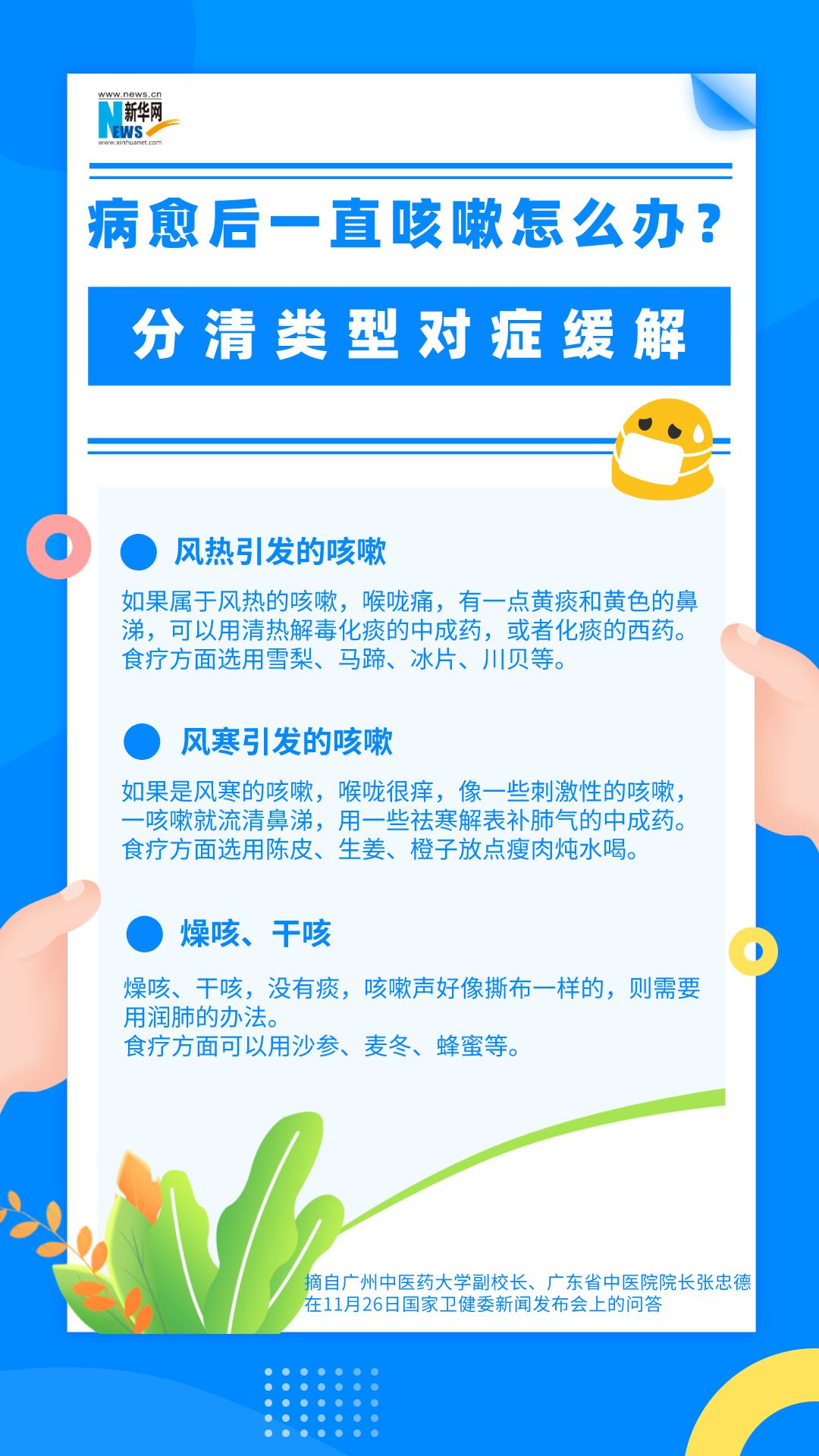 在11月26日召開的國家衛(wèi)健委新聞發(fā)布會上,廣州中醫(yī)藥大學(xué)副校長、廣東省中醫(yī)院院長張忠德也對孩子康復(fù)后一直咳嗽的情況作出解答。