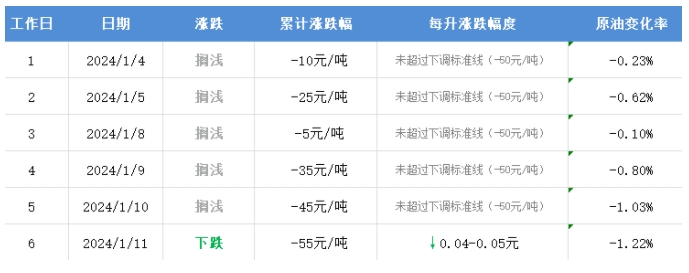 1月11日,本輪國內油價計價統(tǒng)計周期第6個工作日,當前參考原油變化率-1.22%,預計汽柴油下調55元/噸,折算為每升油價下跌0.04-0.05元,加滿50升將節(jié)省2-2.5元!