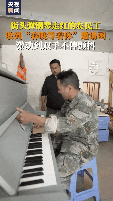 58歲建筑工人易群林,曾在深圳街頭用公益鋼琴彈奏多首曲子,引來路人陣陣掌聲。鋼琴是他年少時在親戚家學(xué)的,幾十年過去依然記得。近日,易大哥受邀現(xiàn)場觀看總臺春晚,還在北京彈起鋼琴,他說愿望是能請郎朗指導(dǎo)自己。