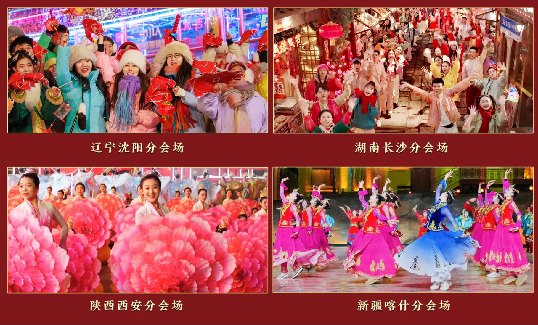 在中國工業(yè)博物館的沈陽分會場,東北曲藝與當(dāng)代風(fēng)尚的創(chuàng)意碰撞,讓受眾在冰天雪地感受火一般的熱情;長沙分會場選址于湘江與瀏陽河交匯處的“三館一廳”,用青春之歌贊頌“不夜星城”朝氣蓬勃、敢為人先的昂揚(yáng)風(fēng)貌;西安分會場的國潮表演將陜派說唱、創(chuàng)意水袖、鼓樂交響等多種藝術(shù)形式相融合,大唐不夜城再現(xiàn)詩意滿長安的恢弘景象;位于喀什古城內(nèi)的喀什分會場,各族群眾歡歌笑語,帶來器樂展示、情景演繹等表演,共同奏響中華民族一家親的絢麗樂章。第二次彩排中,分會場各具特色的舞臺設(shè)計(jì)和節(jié)目創(chuàng)排展現(xiàn)出當(dāng)?shù)貪庥舻娘L(fēng)土人情和熱烈的新春氛圍,讓五湖四海的歡樂人群共赴美好之約。