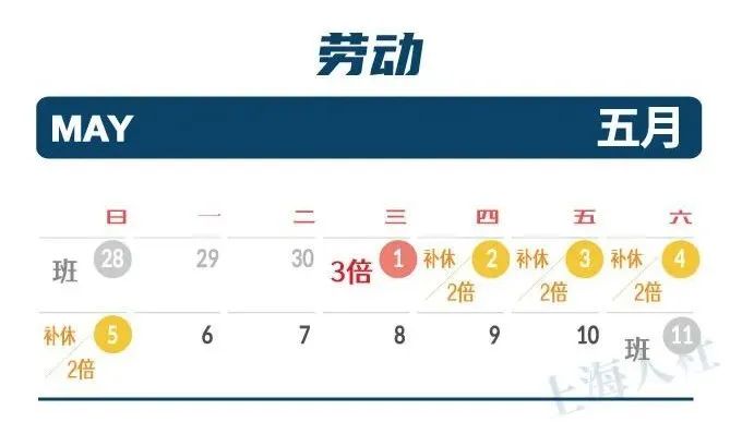 根據(jù)今年假期安排,在5月1日加班的發(fā)放3倍工資,5月2日至5日加班的發(fā)放2倍工資。