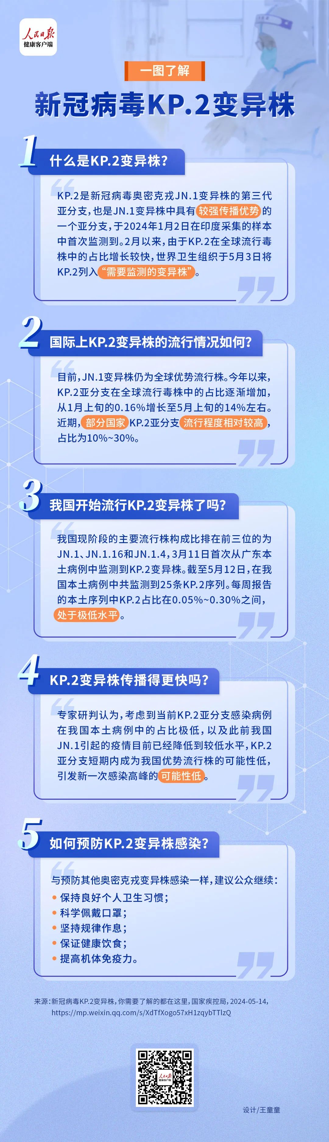 “KP.2變異株是JN.1的衍生株,在最外面的刺突蛋白上有兩個氨基酸的點突變,導(dǎo)致傳染性增強,這可能是其迅速成為主流變異株的主要原因,在國際上看,現(xiàn)在已經(jīng)超過JN.1成為一些國家的主要流行毒株,正是因此,也有很多人擔(dān)心引發(fā)新一輪的感染高峰,但是需要明確的是,只要致病力沒有明顯增加,就暫時可以不用過多擔(dān)心!壁w衛(wèi)解釋。