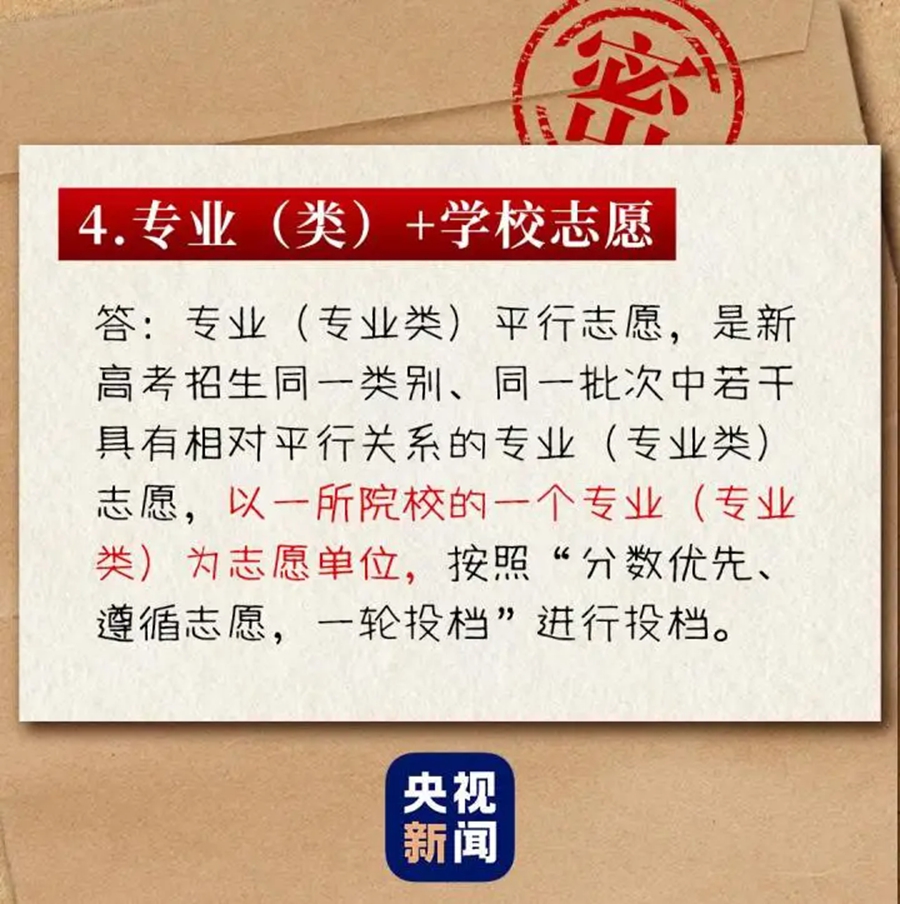 專業(yè)平行志愿投檔時(shí),直接投檔到某院校某專業(yè)(專業(yè)類),不存在專業(yè)服從調(diào)劑,考生也不用擔(dān)心被調(diào)劑到自己不喜歡的專業(yè)。