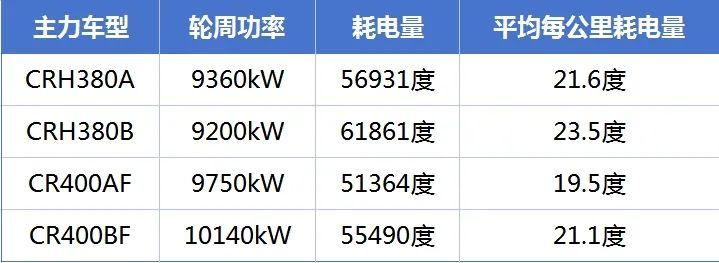 “中國高鐵動車組一公里耗一萬度電”的說法偷換了概念,與事實不符。以現(xiàn)有CRH380A、CRH380B、CR400AF、CR400BF等4個8編組的主力車型為例,其輪周功率分別為:9360kW、9200kW、9750kW、10140kW,通過在京滬高鐵(往返距離2636公里)達(dá)速350km/h運(yùn)行條件下的能耗測試數(shù)據(jù)顯示,其耗電量分別為:56931度、61861度、51364度、55490度,據(jù)此推算出平均每公里耗電量分別為:21.6度、23.5度、19.5度、21.1度。