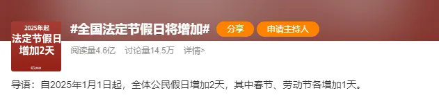 春節(jié)和勞動節(jié)各增加一天