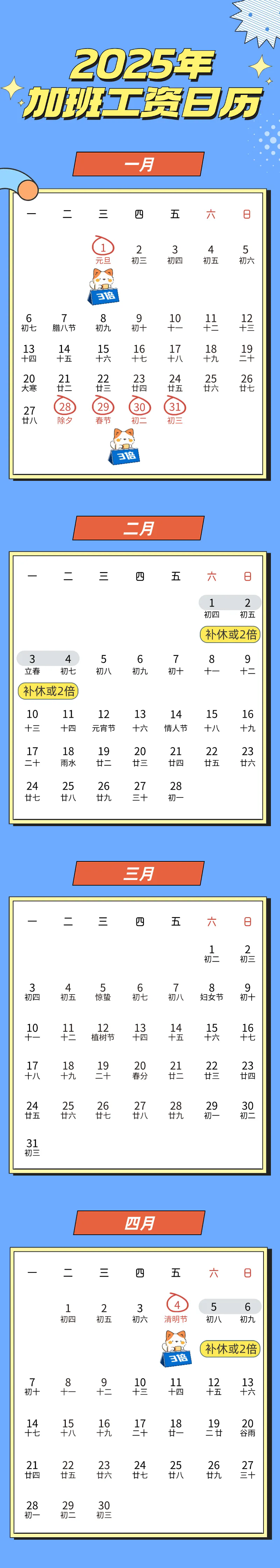 加班工資日歷新鮮出爐